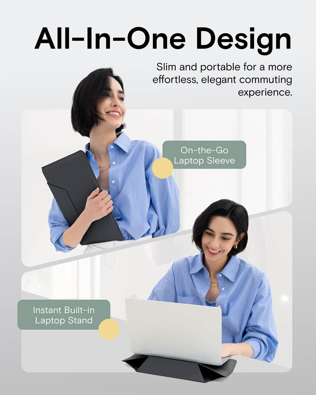 شنطة موفت لاجهزة اللابتوب / حجم 16 انش / تتحول ستاند بعدة زوايا / لون Panna Cotta