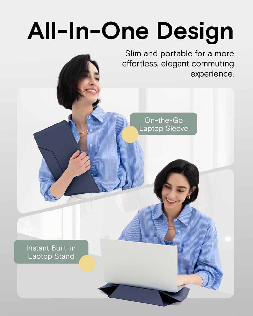 شنطة موفت لاجهزة اللابتوب / حجم 14 انش / تتحول ستاند بعدة زوايا / لون Panna Cotta