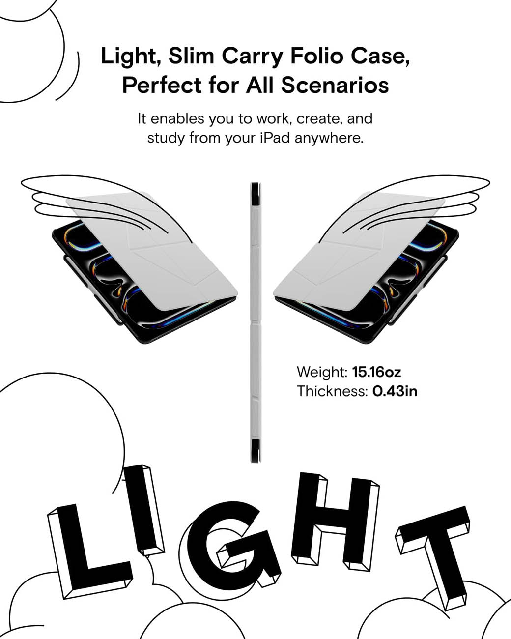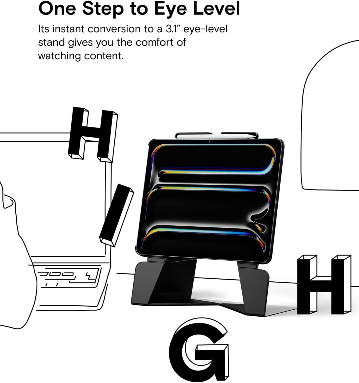 يزيد ارتفاع الايباد بحيث يكون بمستوى العين ويعطيك استخدام مريح اكثر.