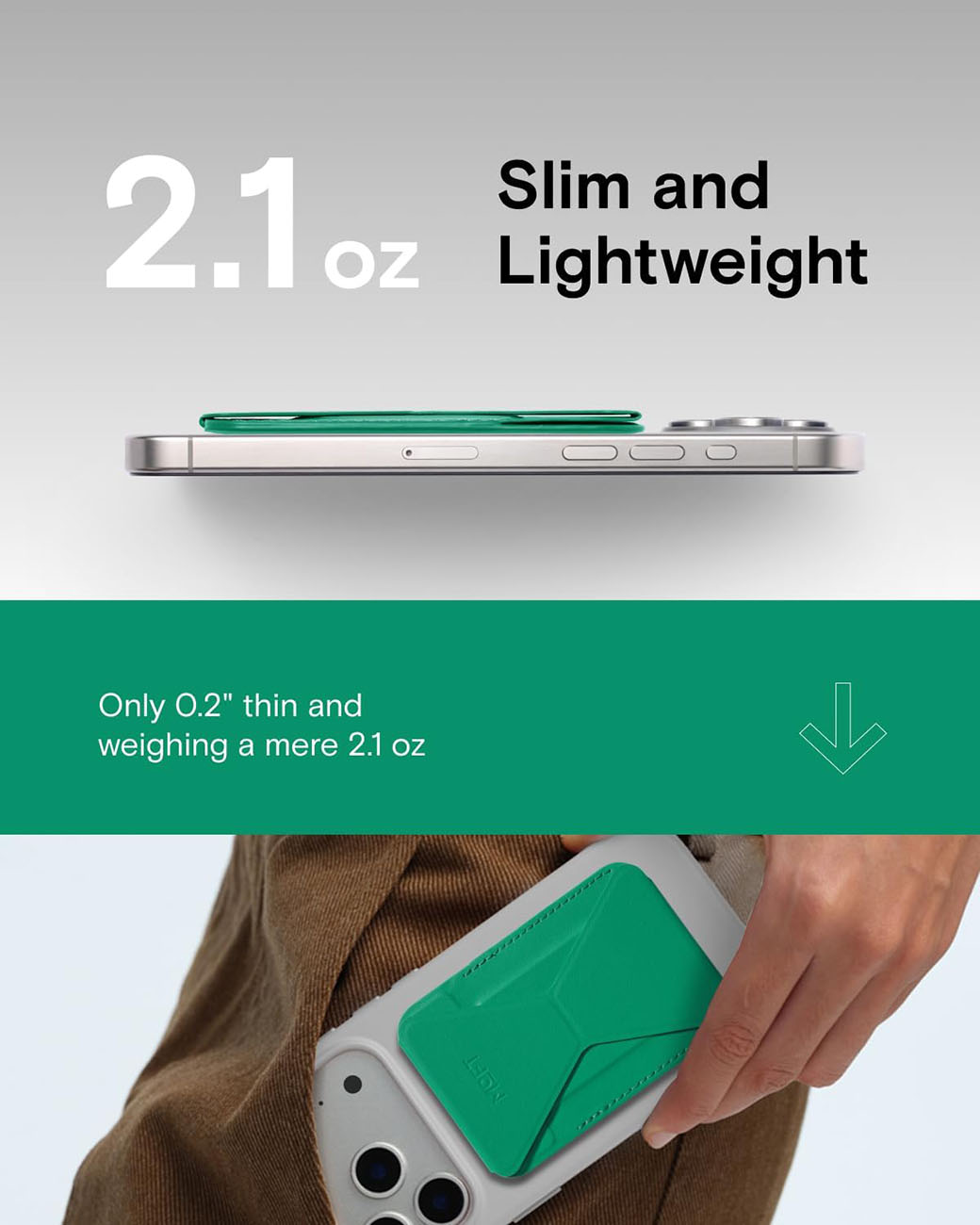 ستاند و بووك موفت المغناطيسي للجوال / يدعم MagSafe / ميزة الحماية من RFID / لون Oz Green