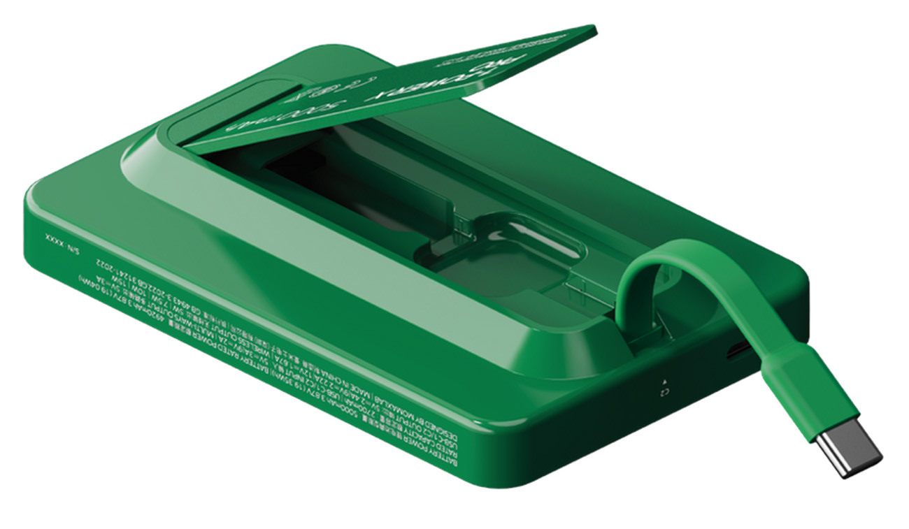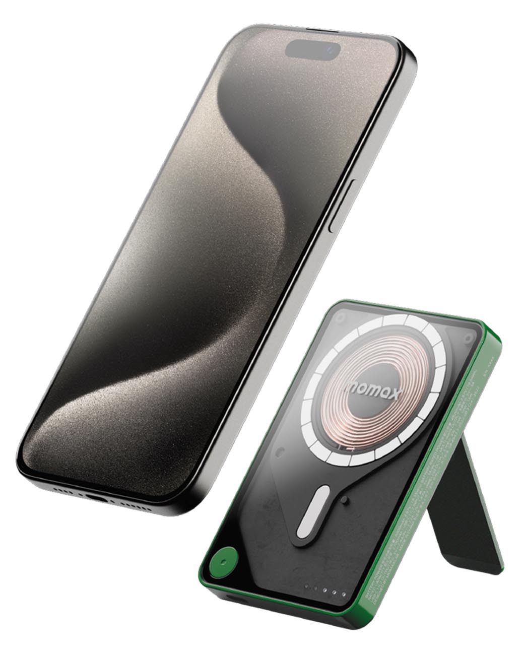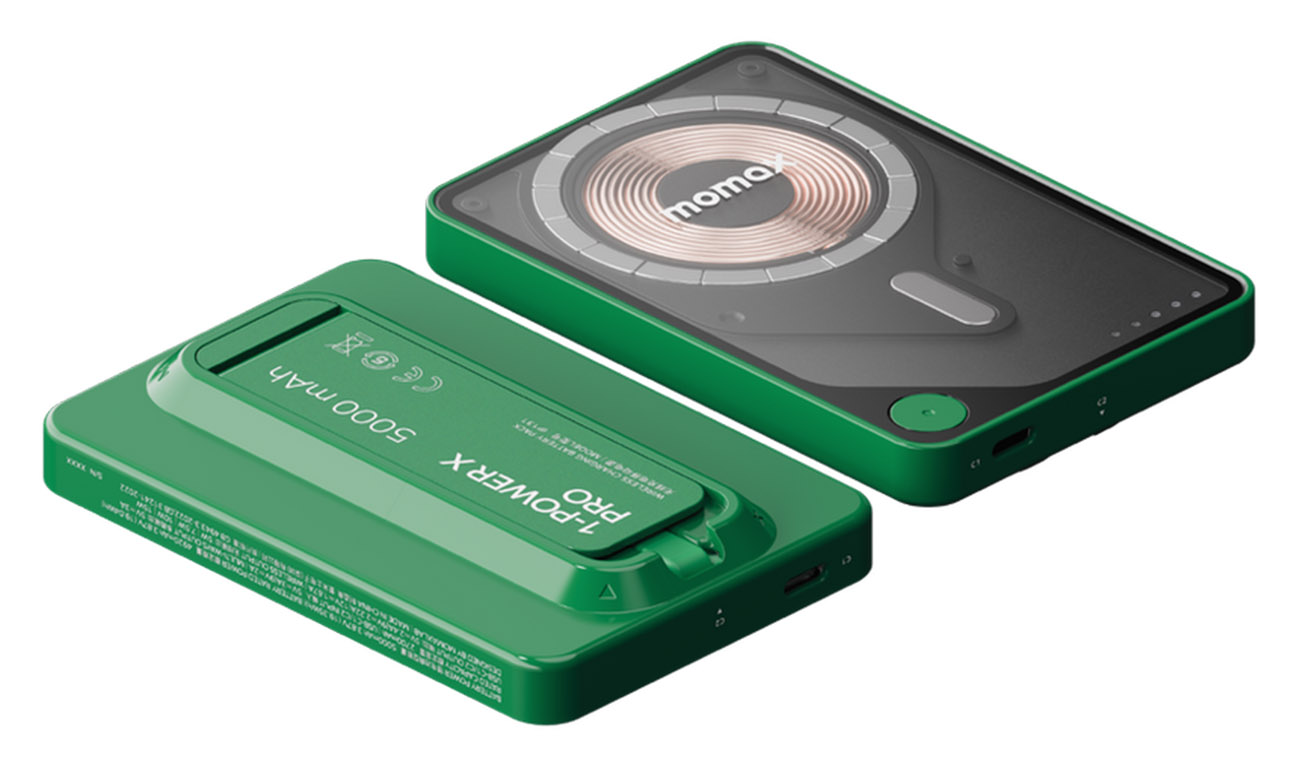 بطارية Momax 1-Power اللاسلكية / سعة 5000 mAh / مع ستاند + واير تايب سي مدمج / ماج سيف / اخضر