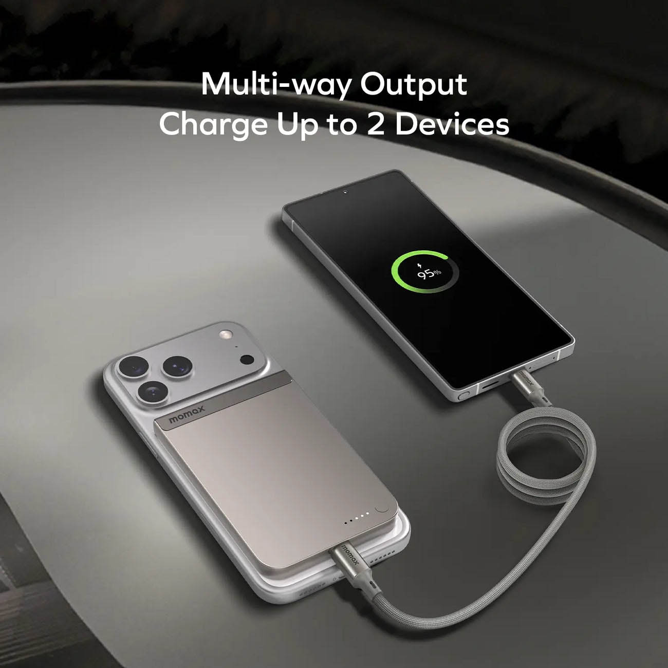 بطارية لاسلكية من Momax / سعة 10 الاف mAh / شحن لاسلكي 25 واط + مدخل تايب سي 30 واط / تيتانيوم
