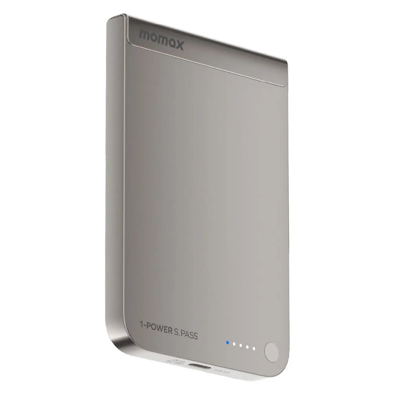 بطارية مغناطيسية من Momax / سعة 5000 mAh / مدخل تايب سي قوة 20 واط / تصميم نحيف / فضي