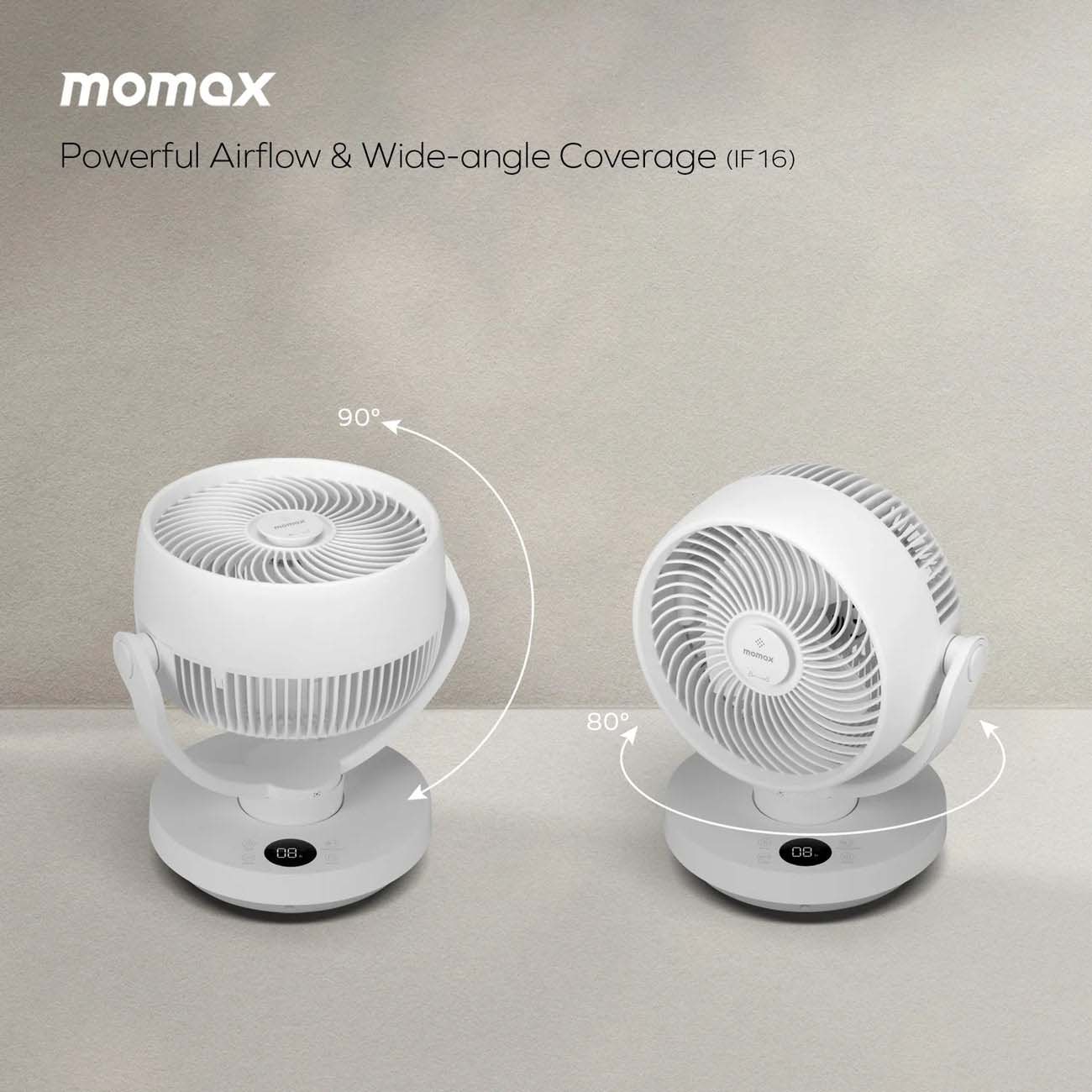 مروحة 1Go متنقلة من Momax / تعمل بالبطارية / اعدادات مختلفة للسرعة / تبريد سريع