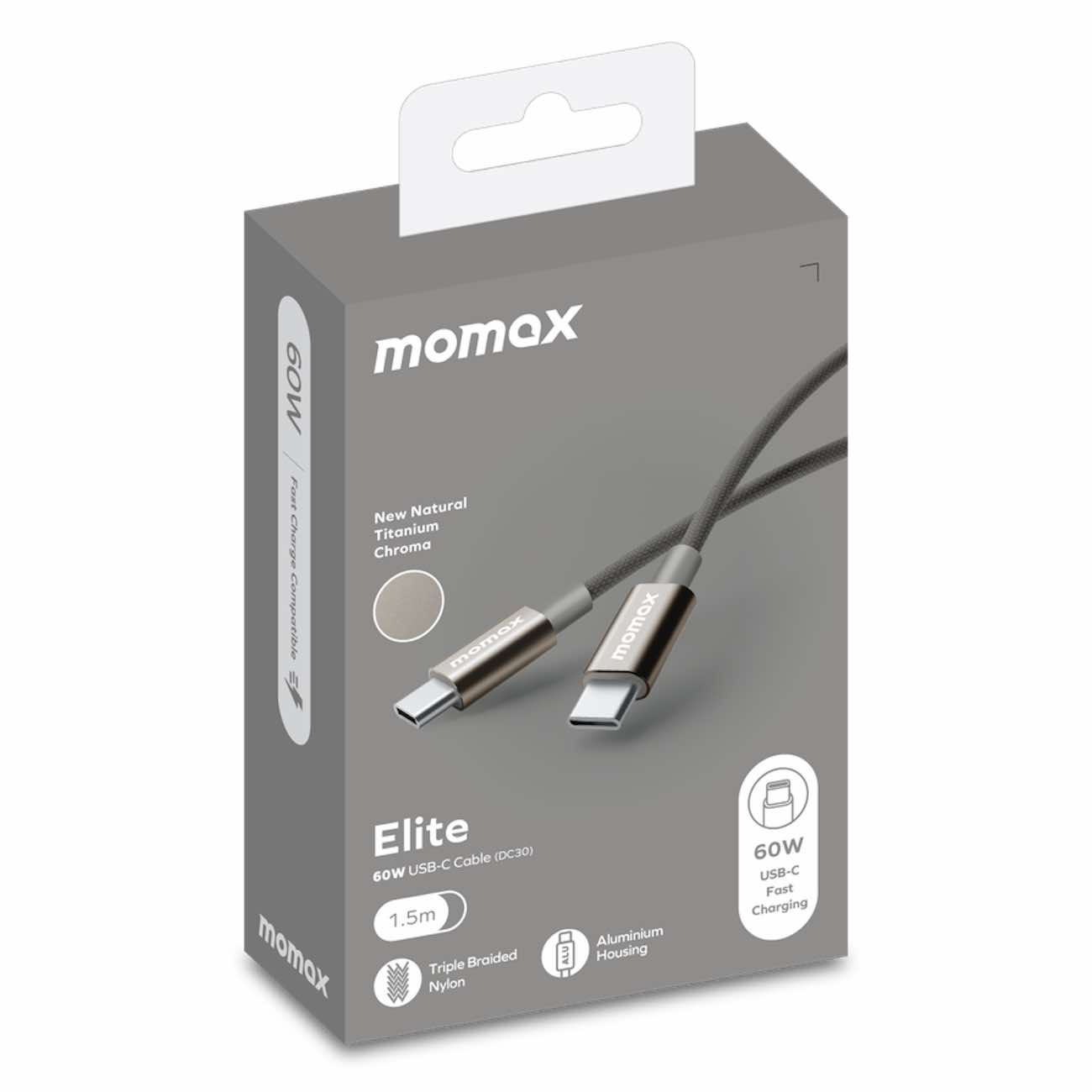 واير Elite نوع تايب سي الى تايب سي من Momax / قوة 60 واط / طول 1.5 متر / اسود