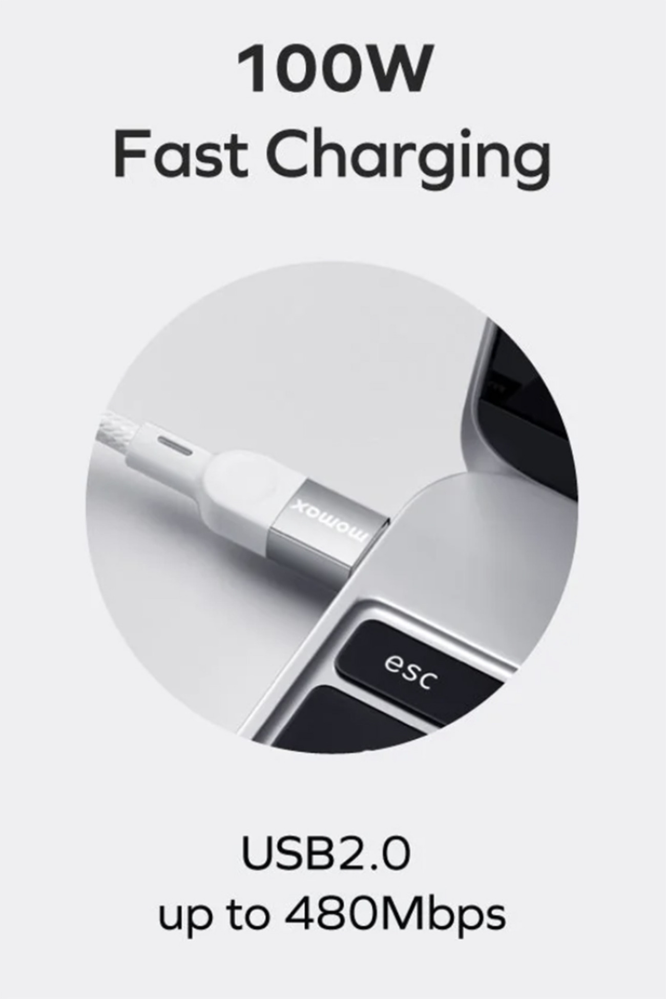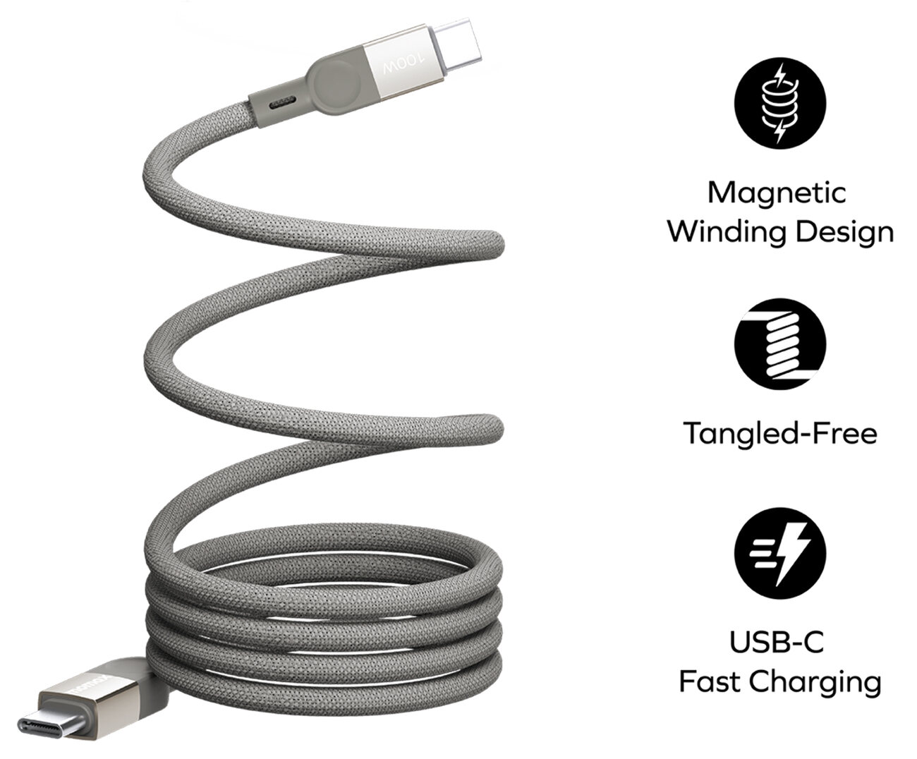 واير MagLink نوع تايب سي الى تايب سي من Momax / قوة 100 واط / طول 1 متر / ابيض