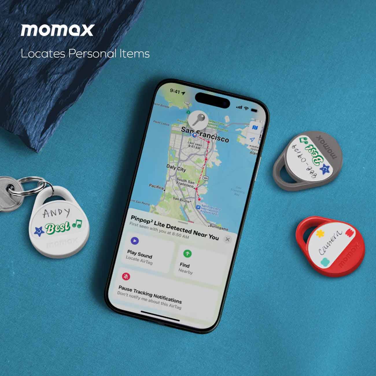 قطعة Pinpop 2 لتعقب الاغراض من Momax / تدعم ميزة Find My و Find Hub / بطارية قابلة للتبديل / رصاصي