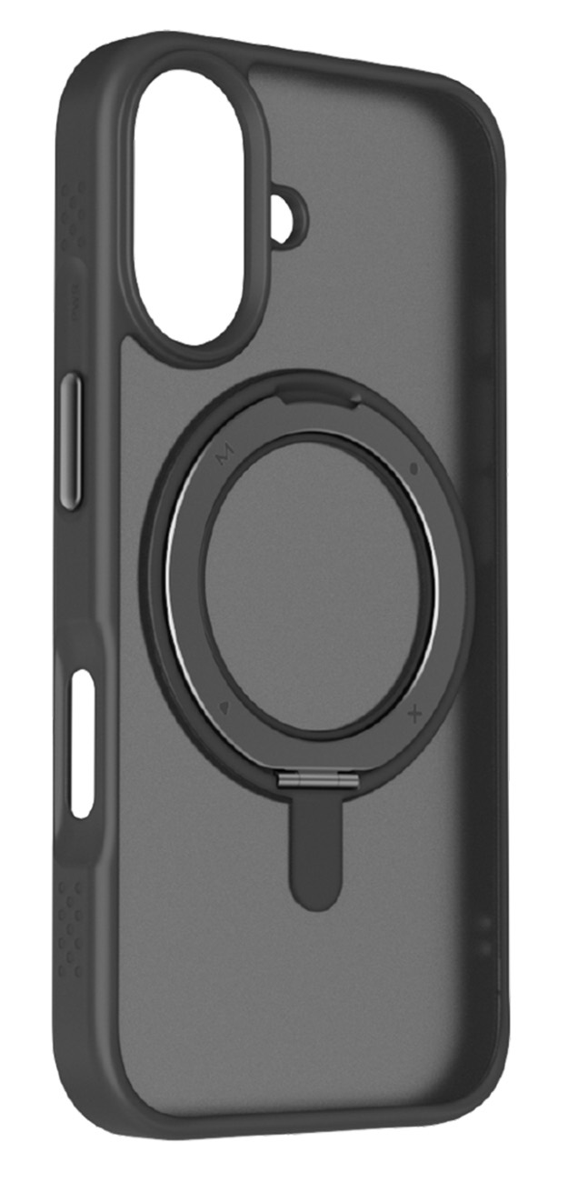 كفر Momax Roller لايفون 16 بلس / مع ستاند و مسكة مدمجة / يدعم MagSafe / ضد الطيحات / اسود