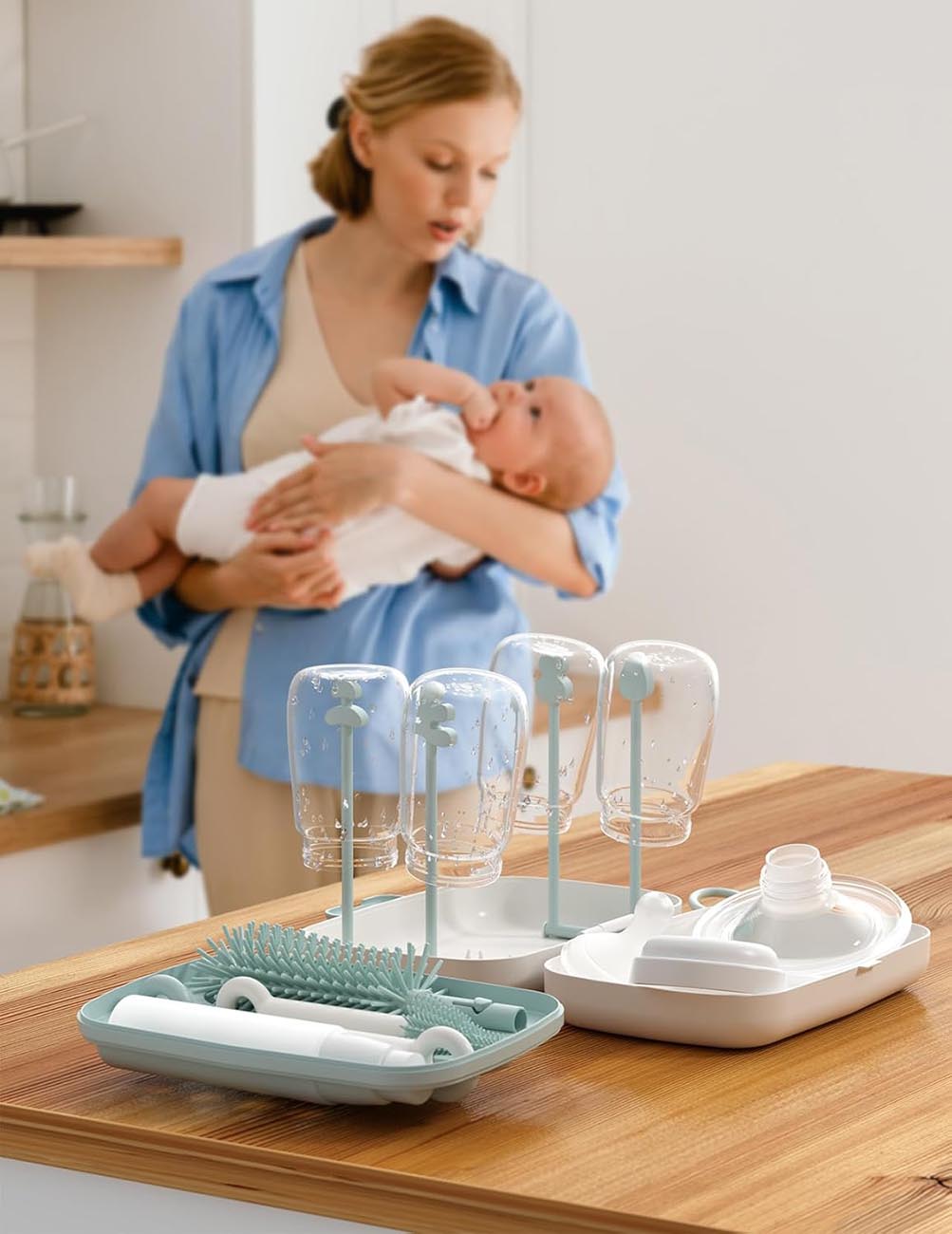 فرشاة اسنان و منظف لسان للاطفال من Momcozy / سيليكون ناعم / ازرق
