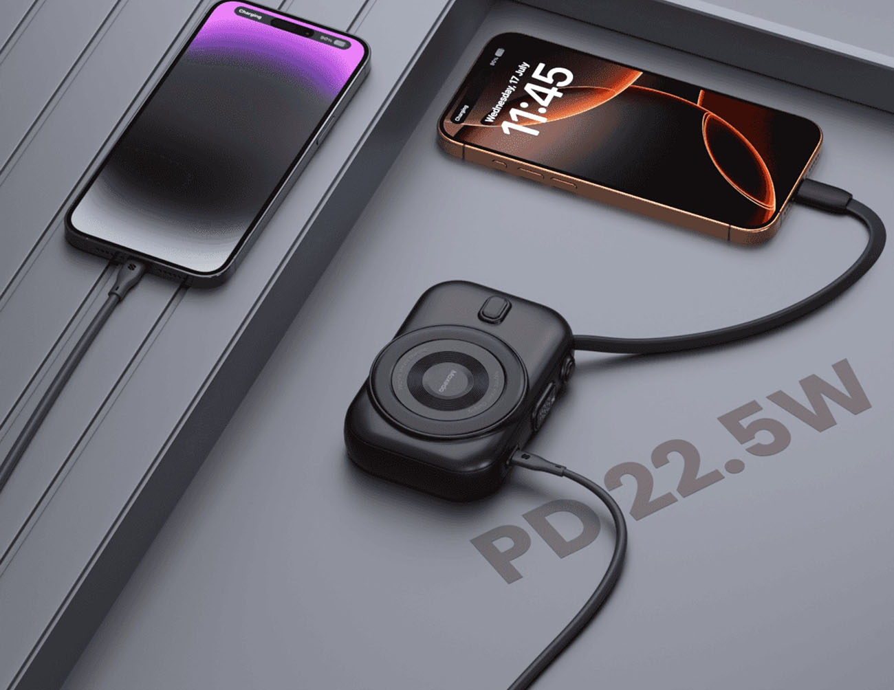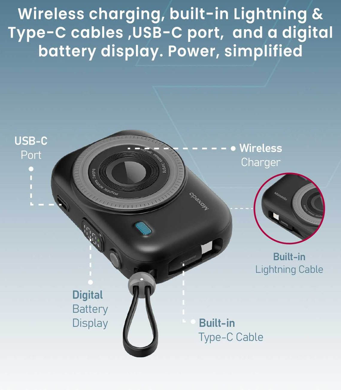 بطاريتين تحتوي على واير تايب سي و واير Lightning مدمج.