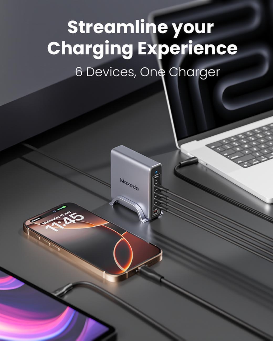 شاحن Momax GaN بقوة 120 واط / مع اربع مداخل تايب سي و مدخلين USB