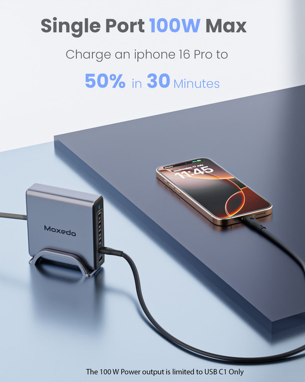 شاحن Momax GaN بقوة 80 واط / مع مدخلين تايب سي و مدخلين USB