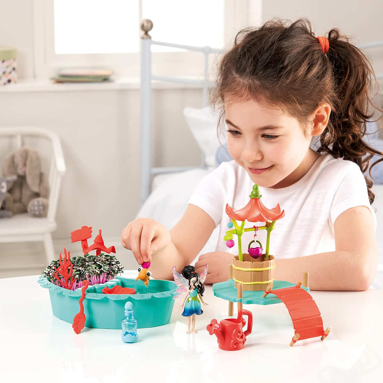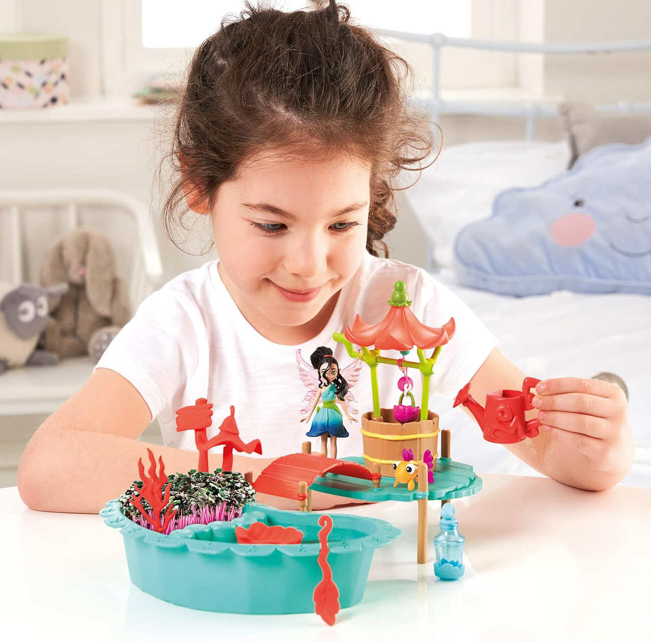 اللعبة مجهزة بالتربة والبذور للزراعة .. بس ضيف لها الماء الكافي واستمتع بالنباتات اللي بتظهر.