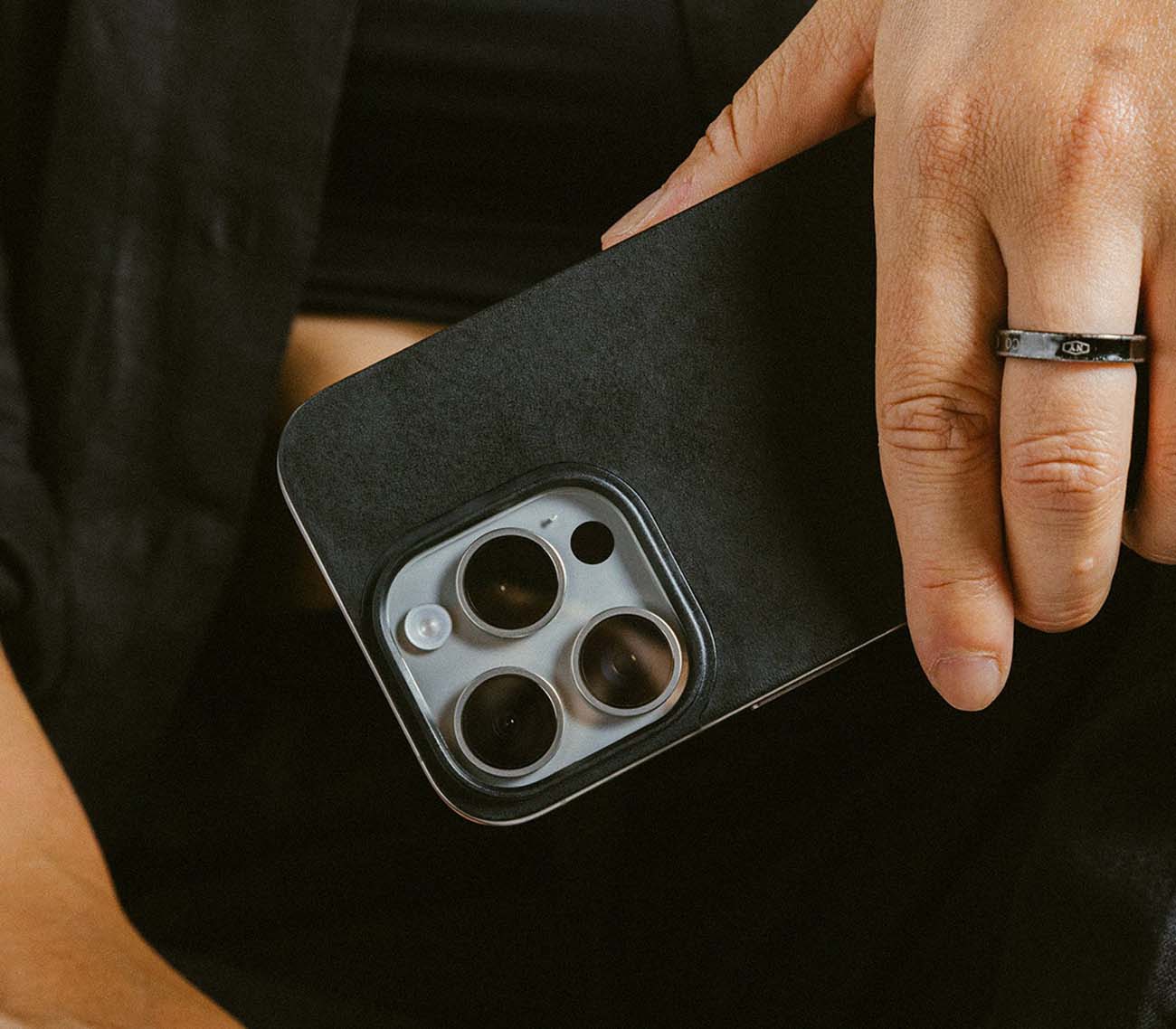 غطاء لحماية الزجاج الخلفي للايفون من Nomad / لايفون 16 برو ماكس / مغناطيسي / جلد اسود