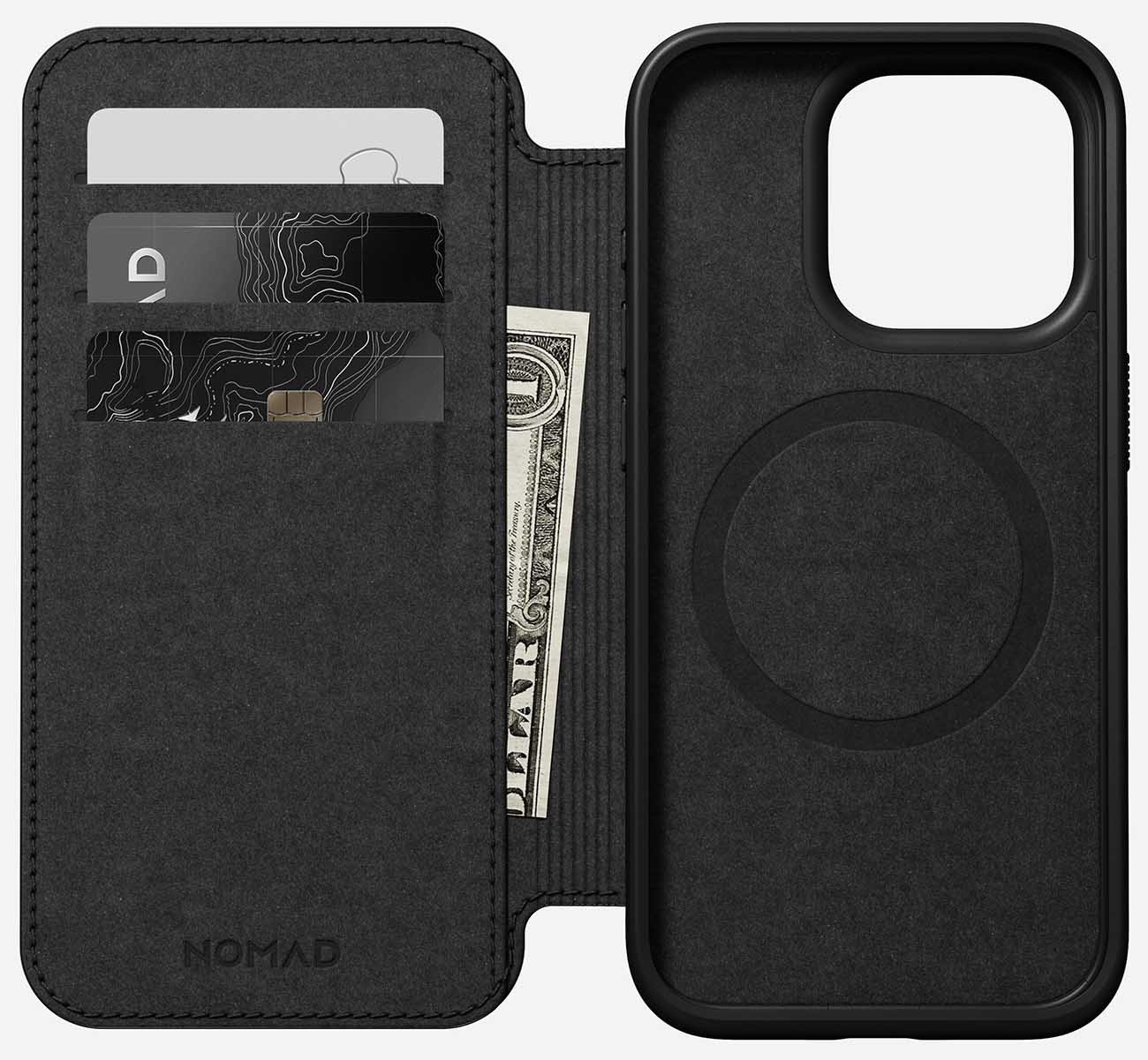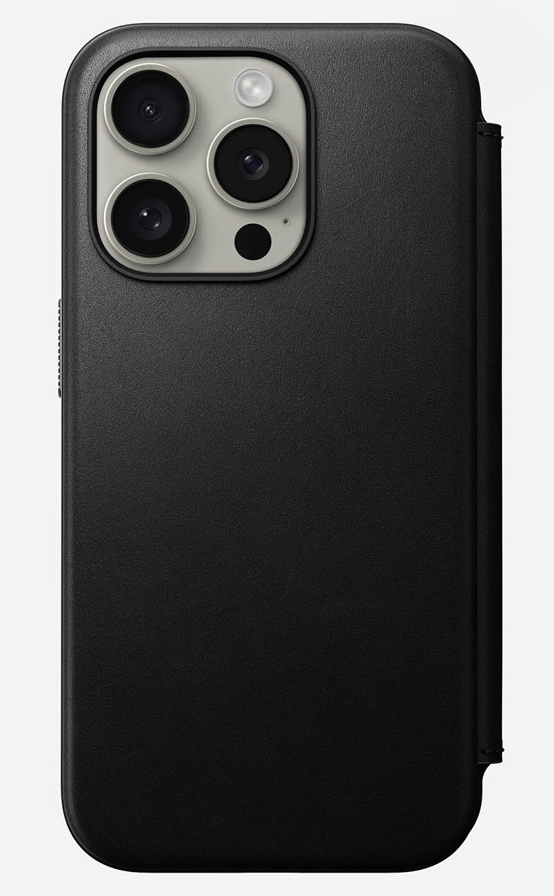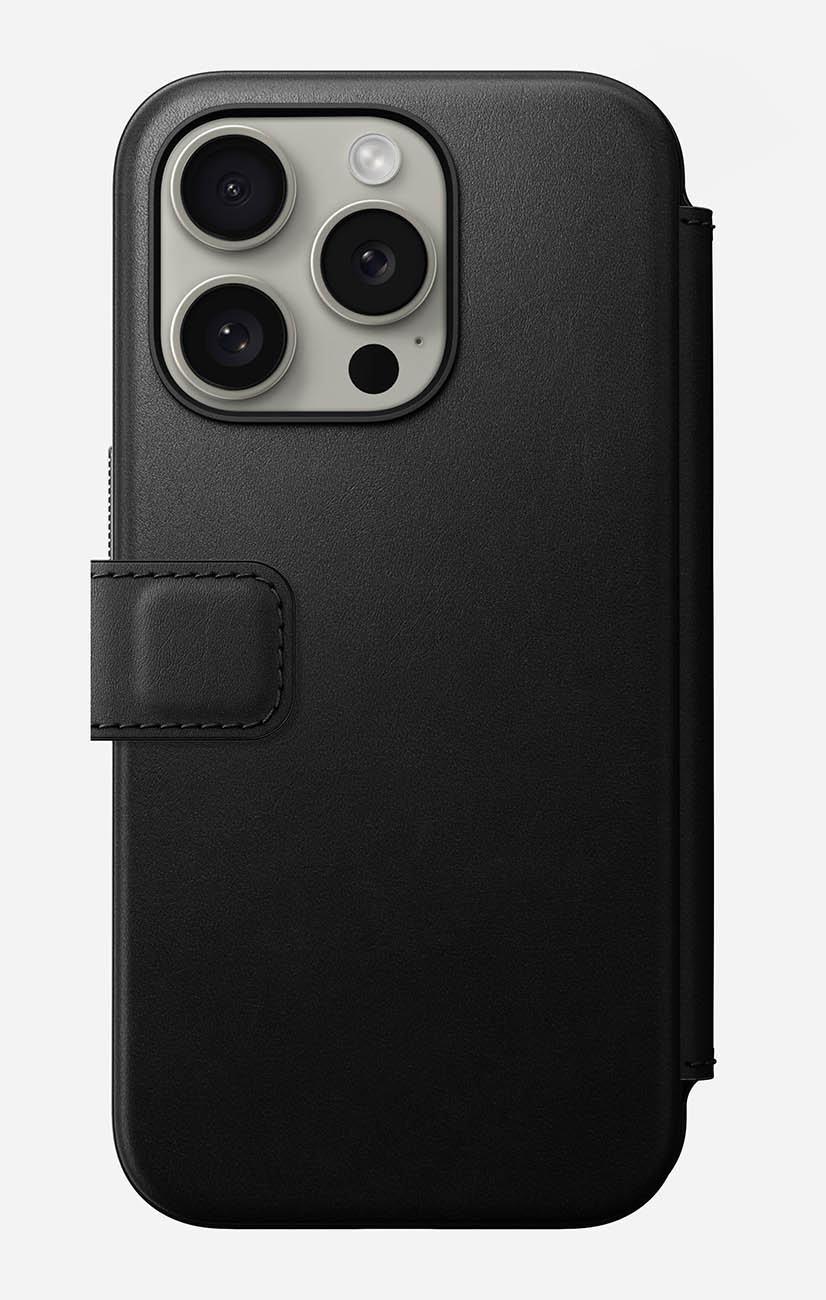 كفر Nomad Leather Folio لايفون 15 برو ماكس / بوك مدمج / يغطي الشاشة / يدعم MagSafe / جلد اسود