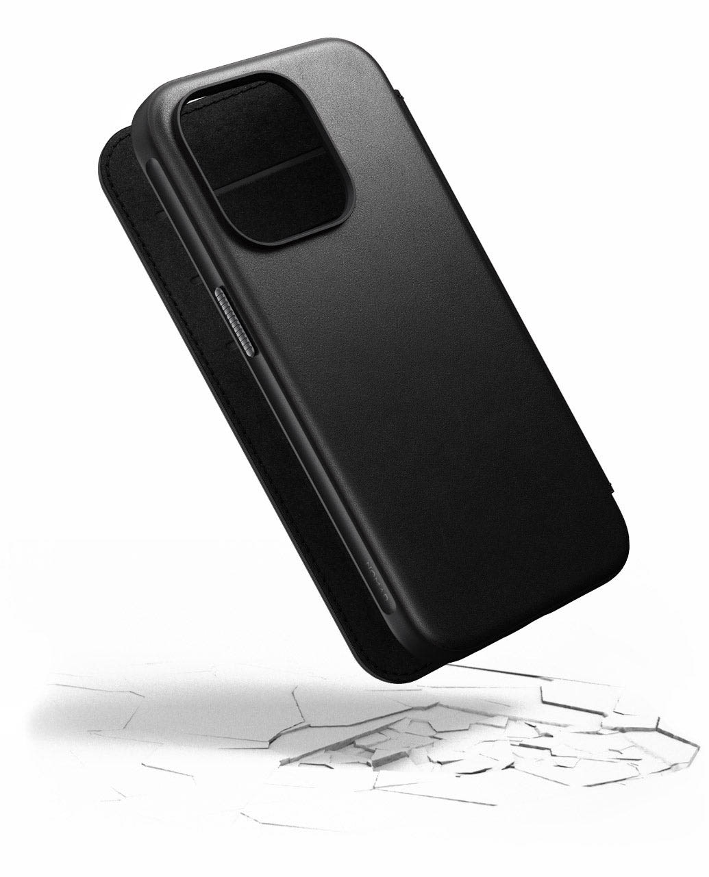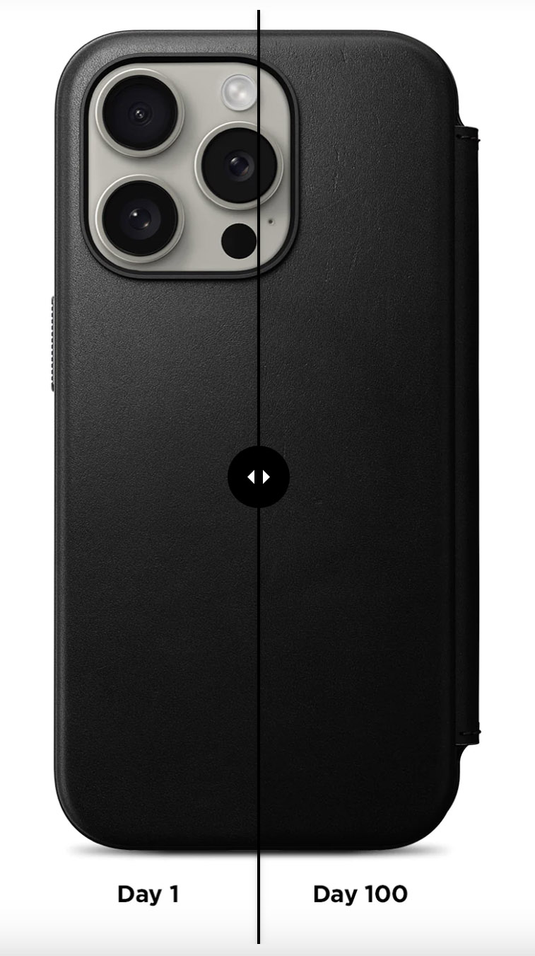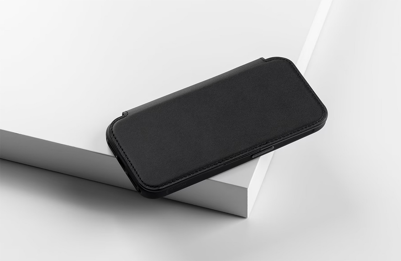 كفر Nomad Leather Folio لايفون 15 برو ماكس / بوك مدمج / يغطي الشاشة / يدعم MagSafe / جلد اسود