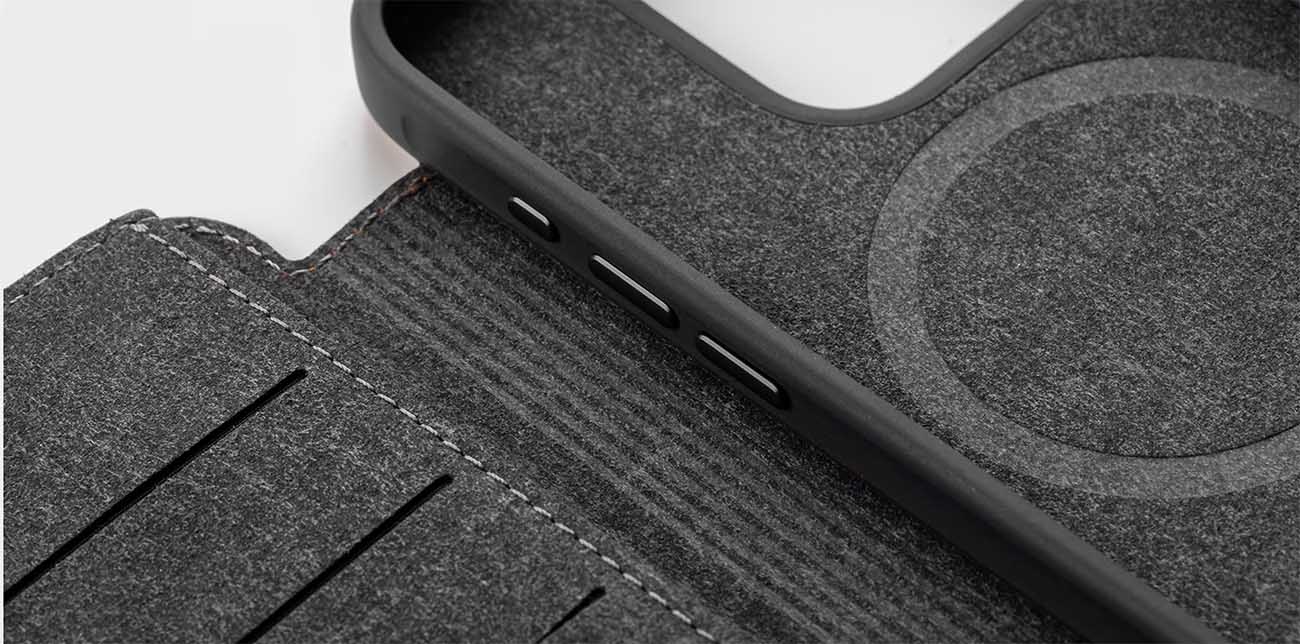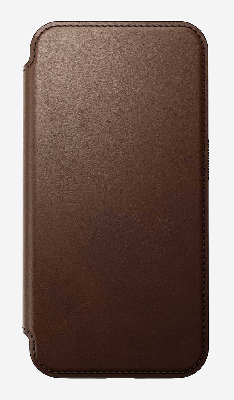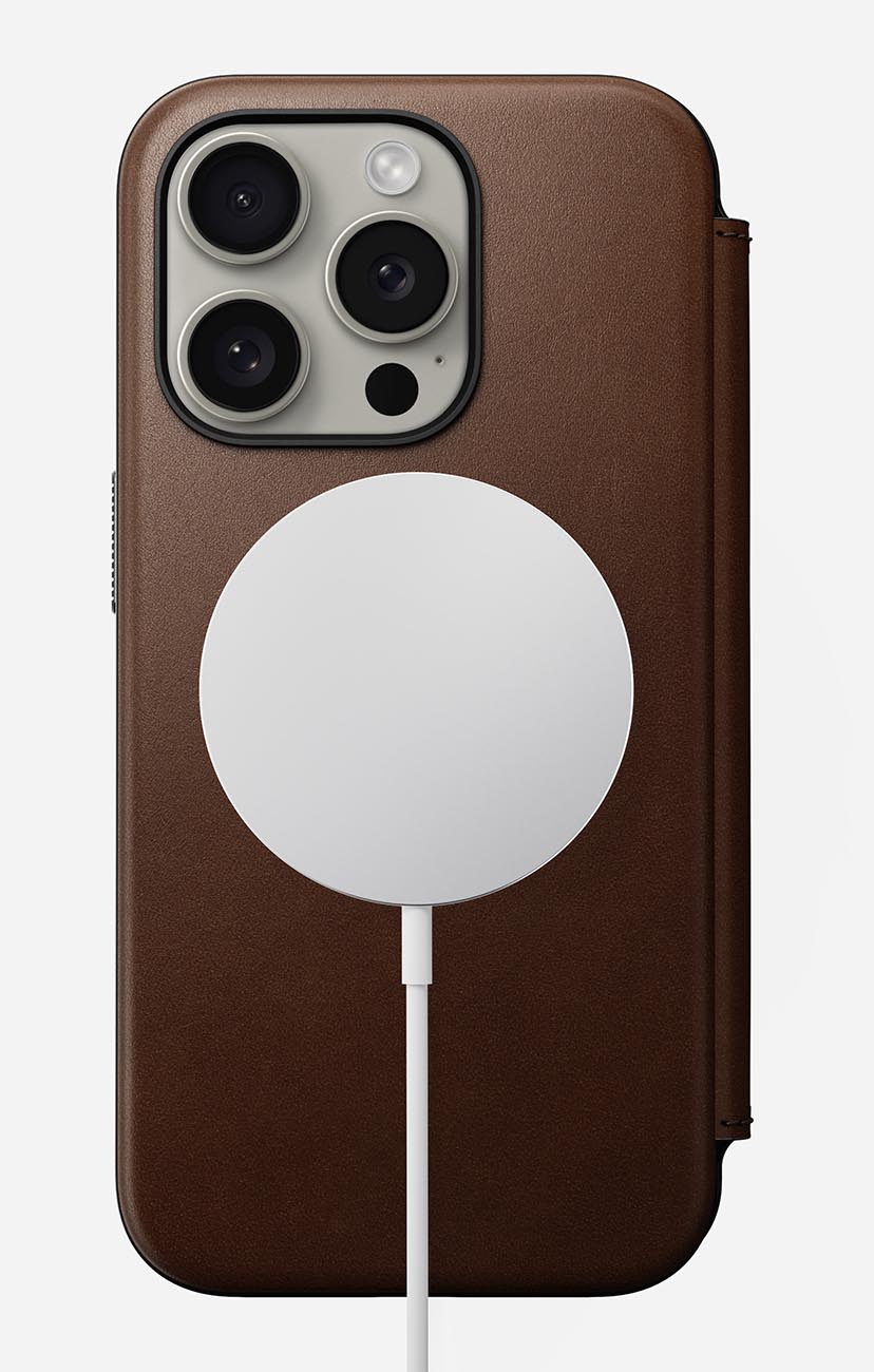 كفر Nomad Leather Folio لايفون 15 برو / بوك مدمج / يغطي الشاشة / يدعم MagSafe / جلد بني