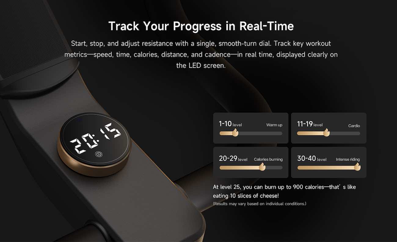 فيه شاشة LED صغيرة ومدمجة .. تعرض لك معلومات مهمة مثل السرعة .. الوقت .. السعرات الحرارية المحروقة .. وعدد الدورات في الدقيقة.