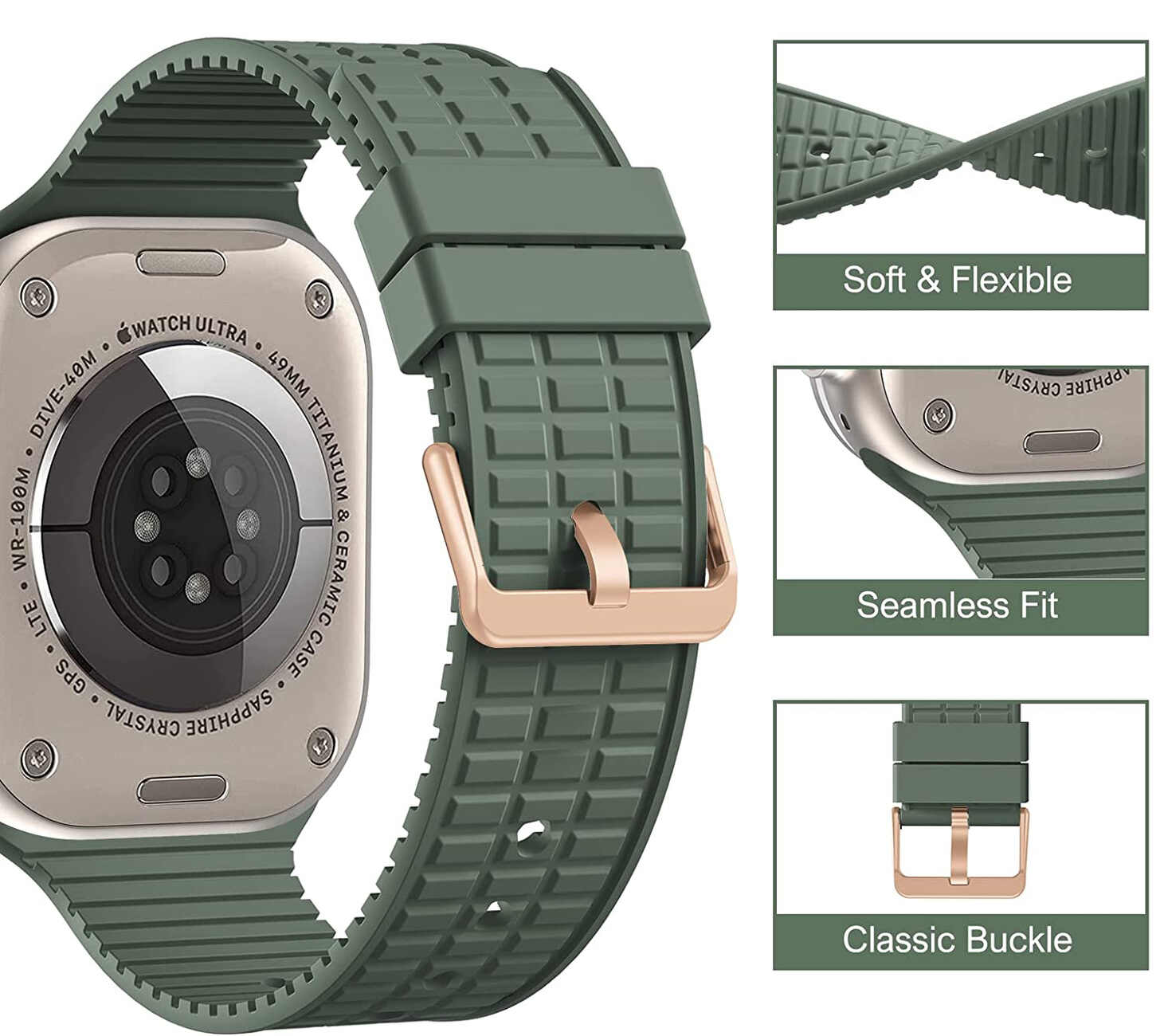 سير Ocean Band الرياضي من 974Bands لساعة ابل الترا / حجم 49 / لون اخضر