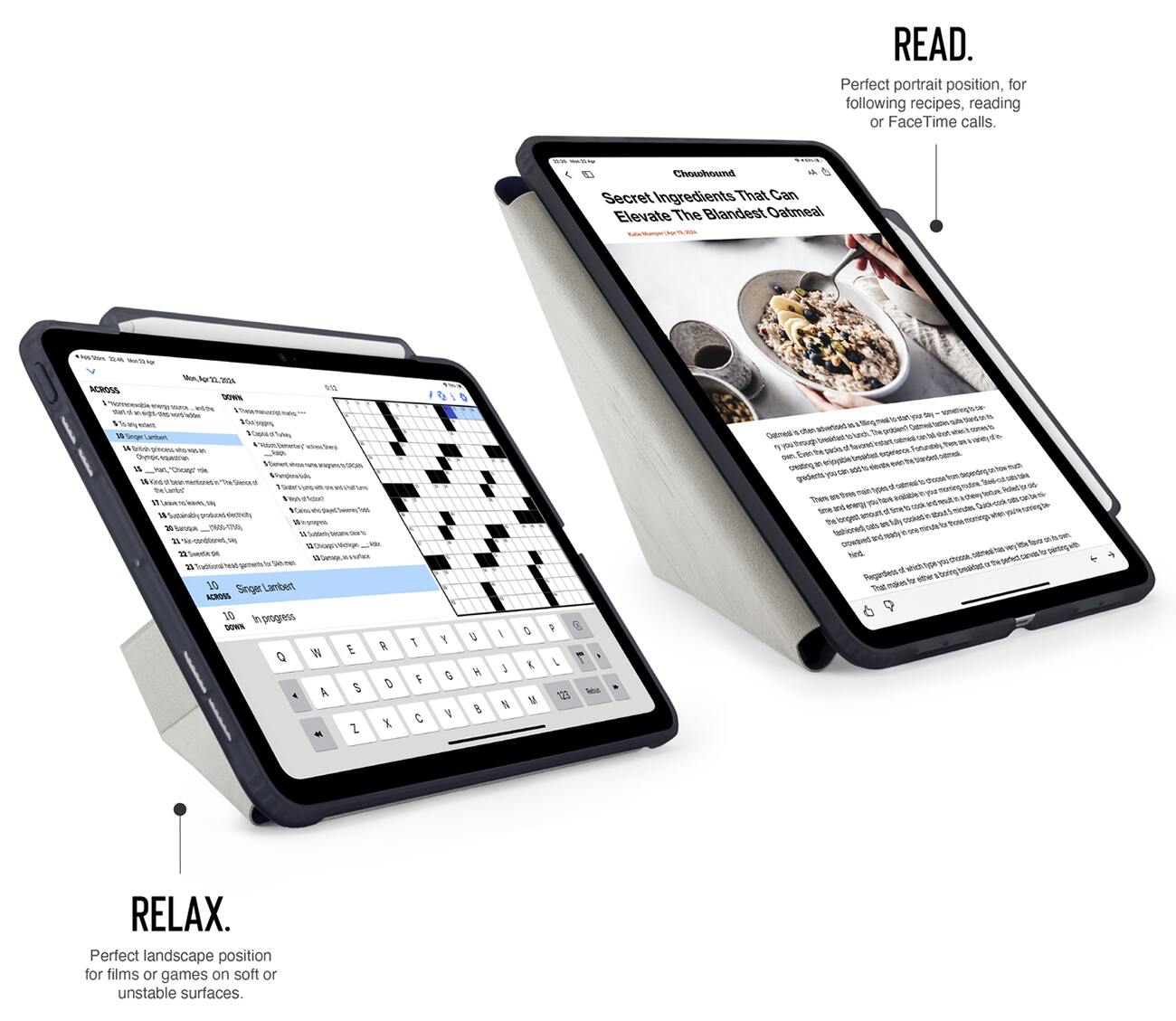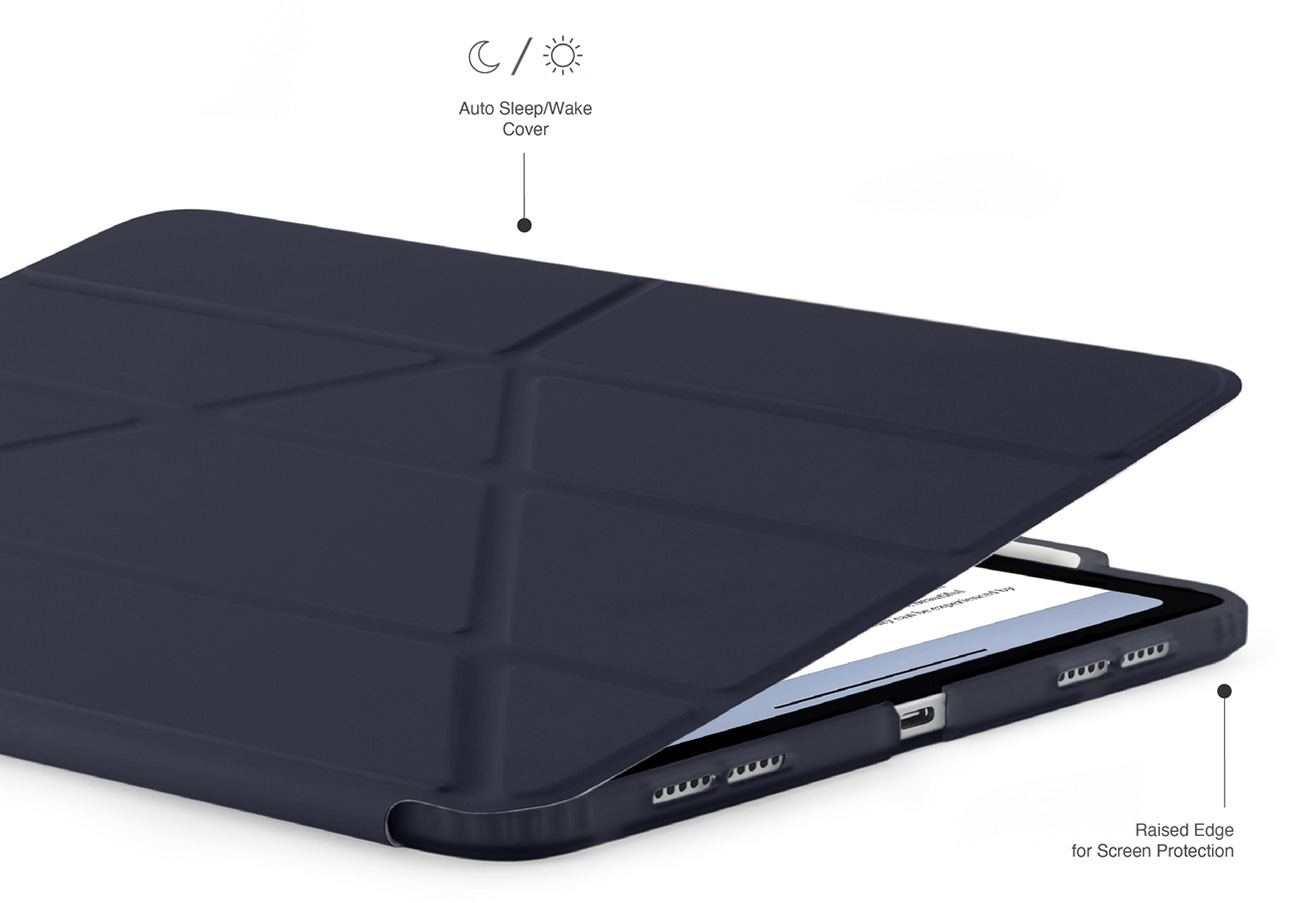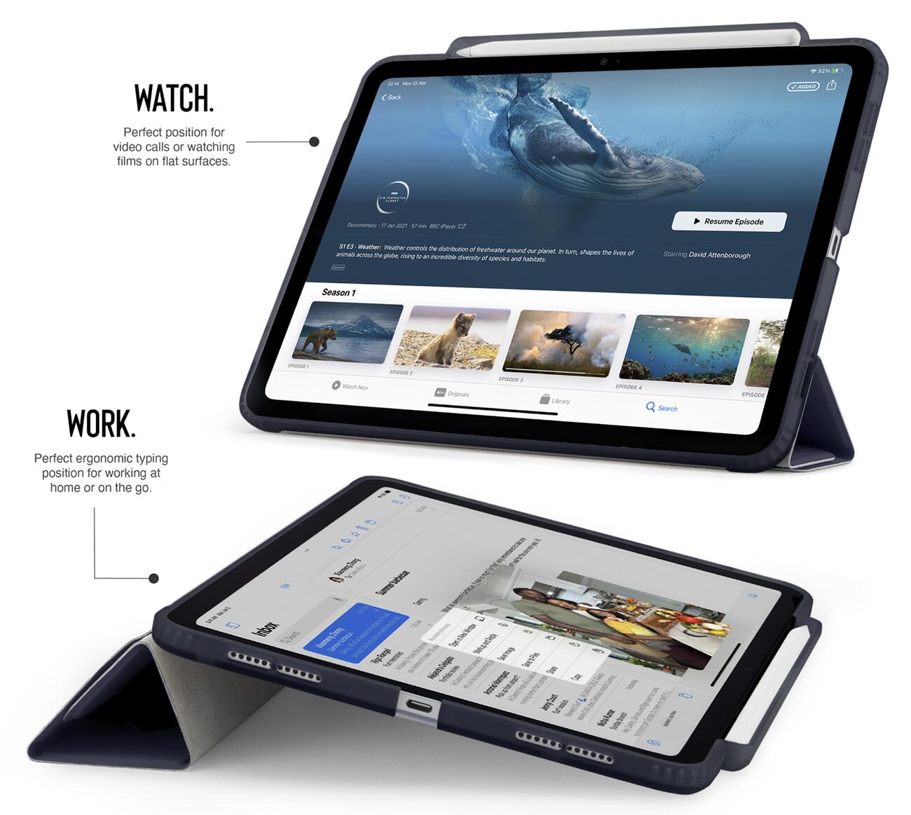من خلال تشكيل الغطاء الامامي .. يمكن تثبيت الايباد بالطول او بالعرض وبعدة زوايا تناسب استخدامكم.