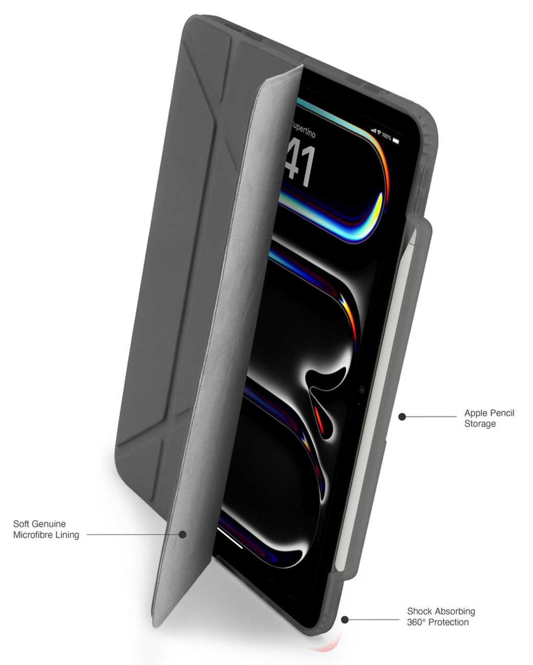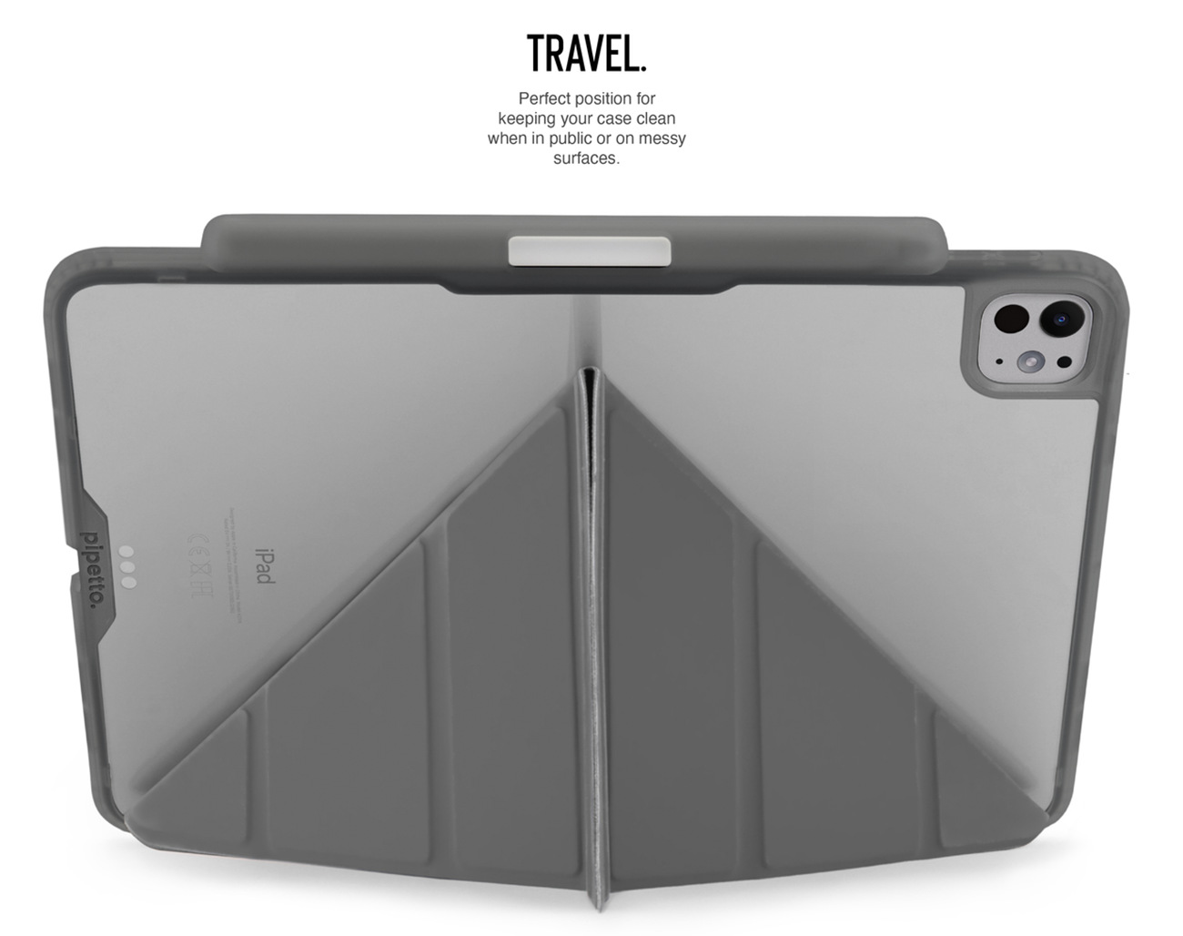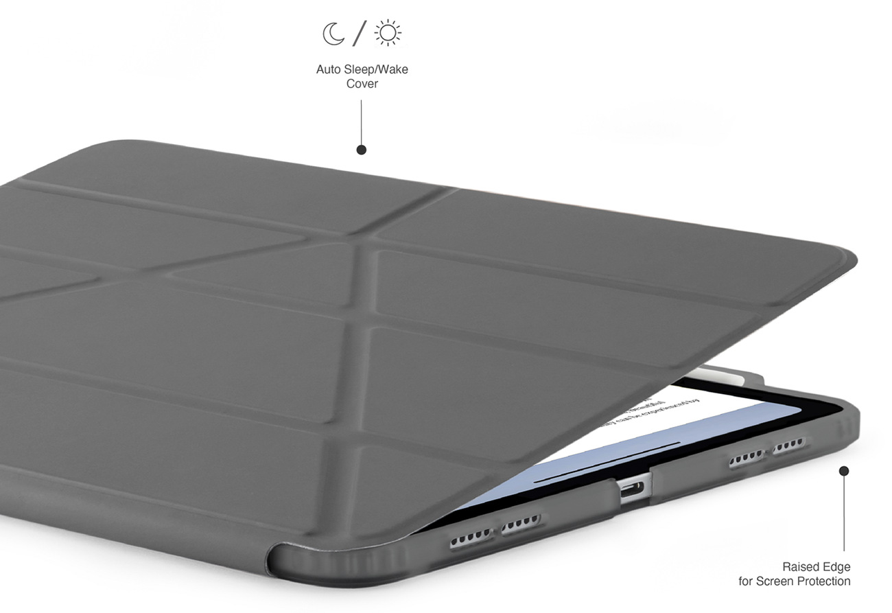 من خلال تشكيل الغطاء الامامي .. يمكن تثبيت الايباد بالطول او بالعرض وبعدة زوايا تناسب استخدامكم.