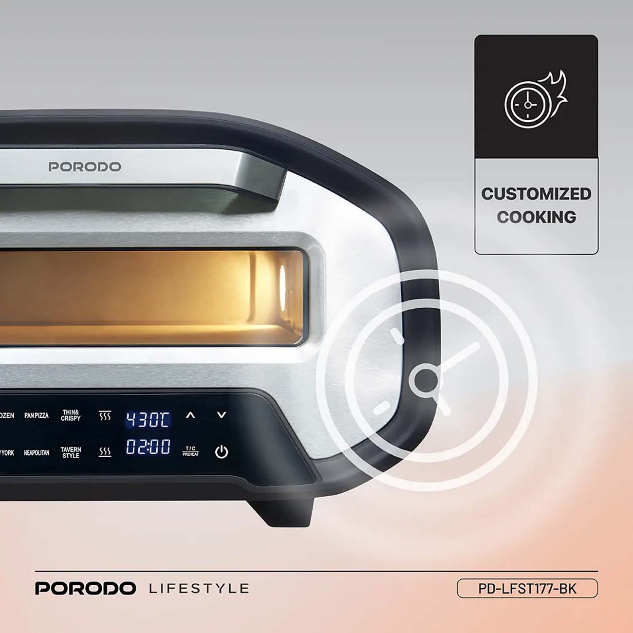 فيه اضاءة داخلية لمراقبة البيتزا أثناء التحضير.