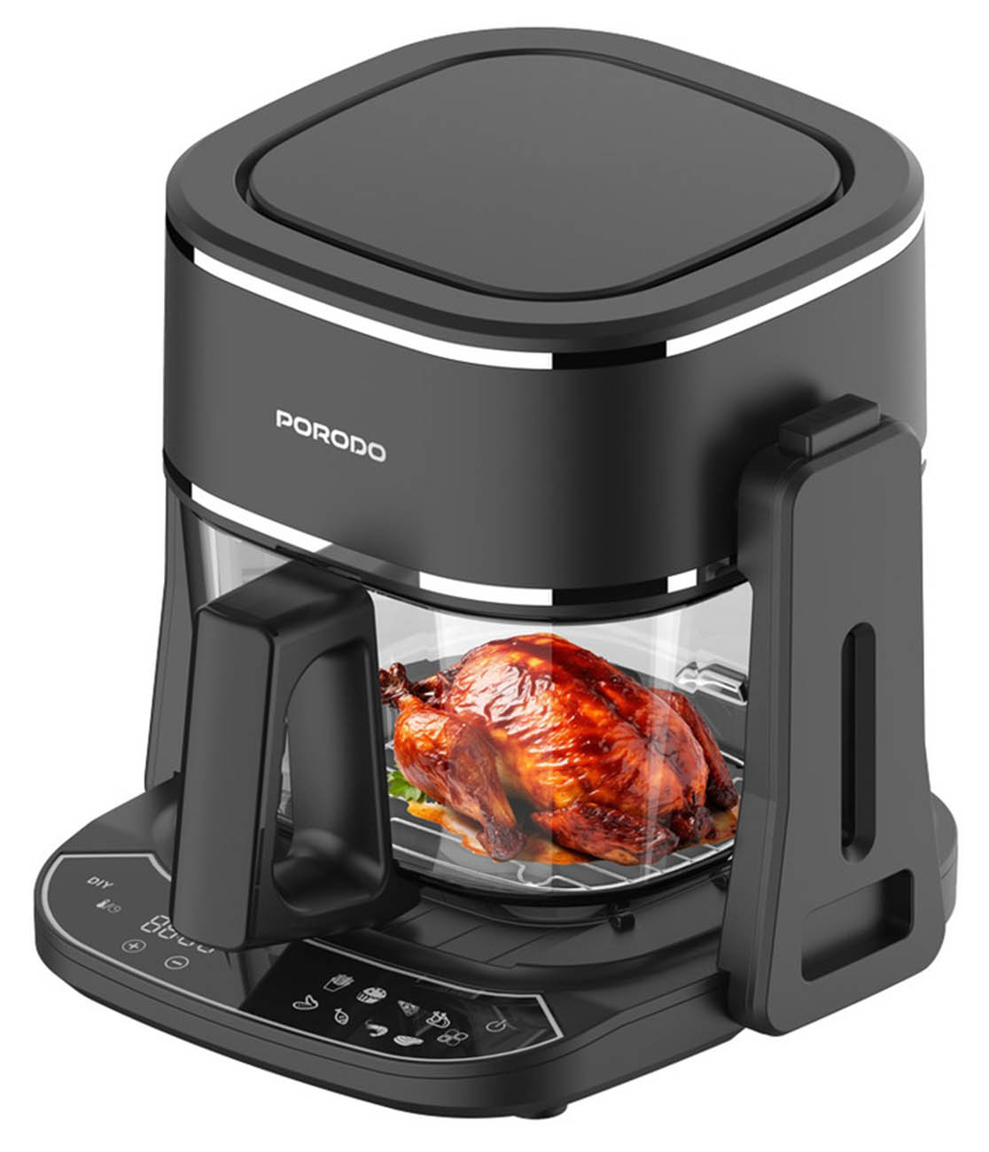 فيها زجاج شفاف يسمح لك تراقب عملية الطهي بسهولة بدون فتح الجهاز.