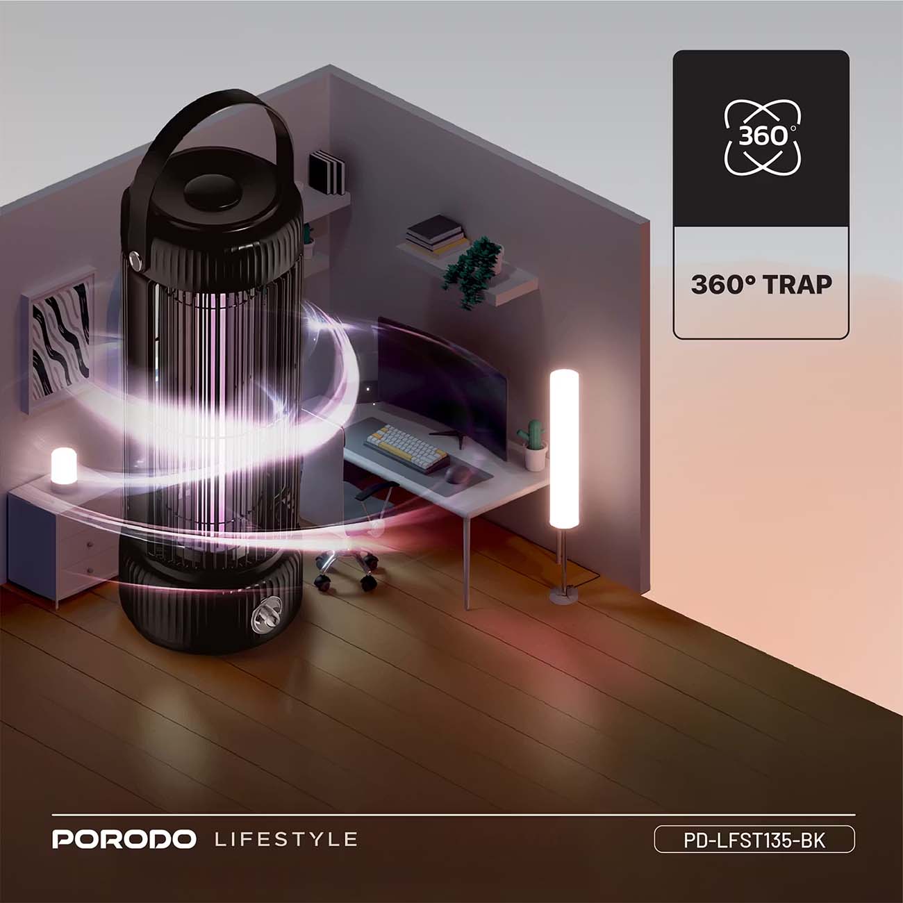 يستخدم الأشعة فوق البنفسجية لجذب الحشرات بشكل هادئ وبدون ازعاج.