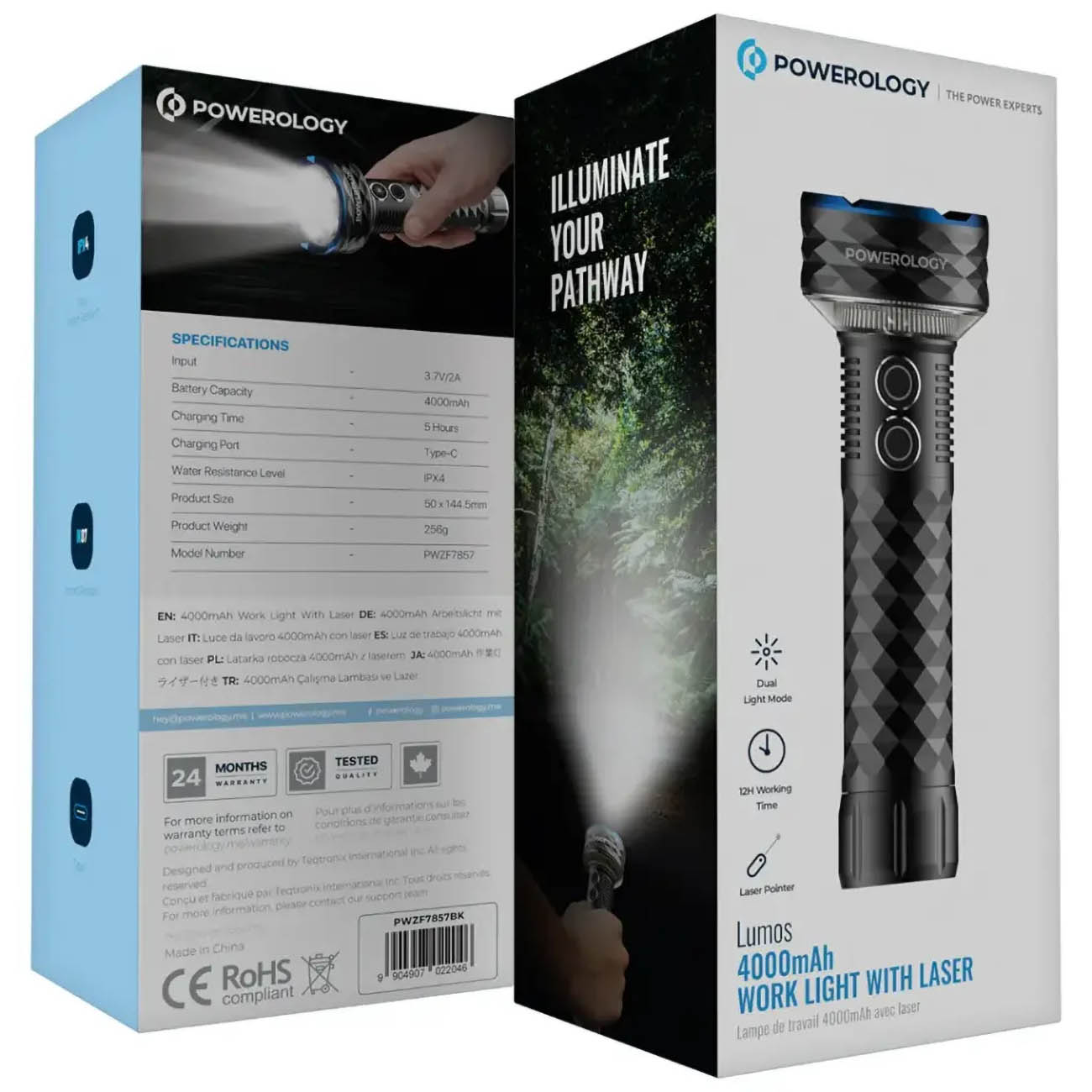 فلاش لايت من باورولوجي / مقاوم للماء / يعمل بالبطارية / باور بانك مدمج