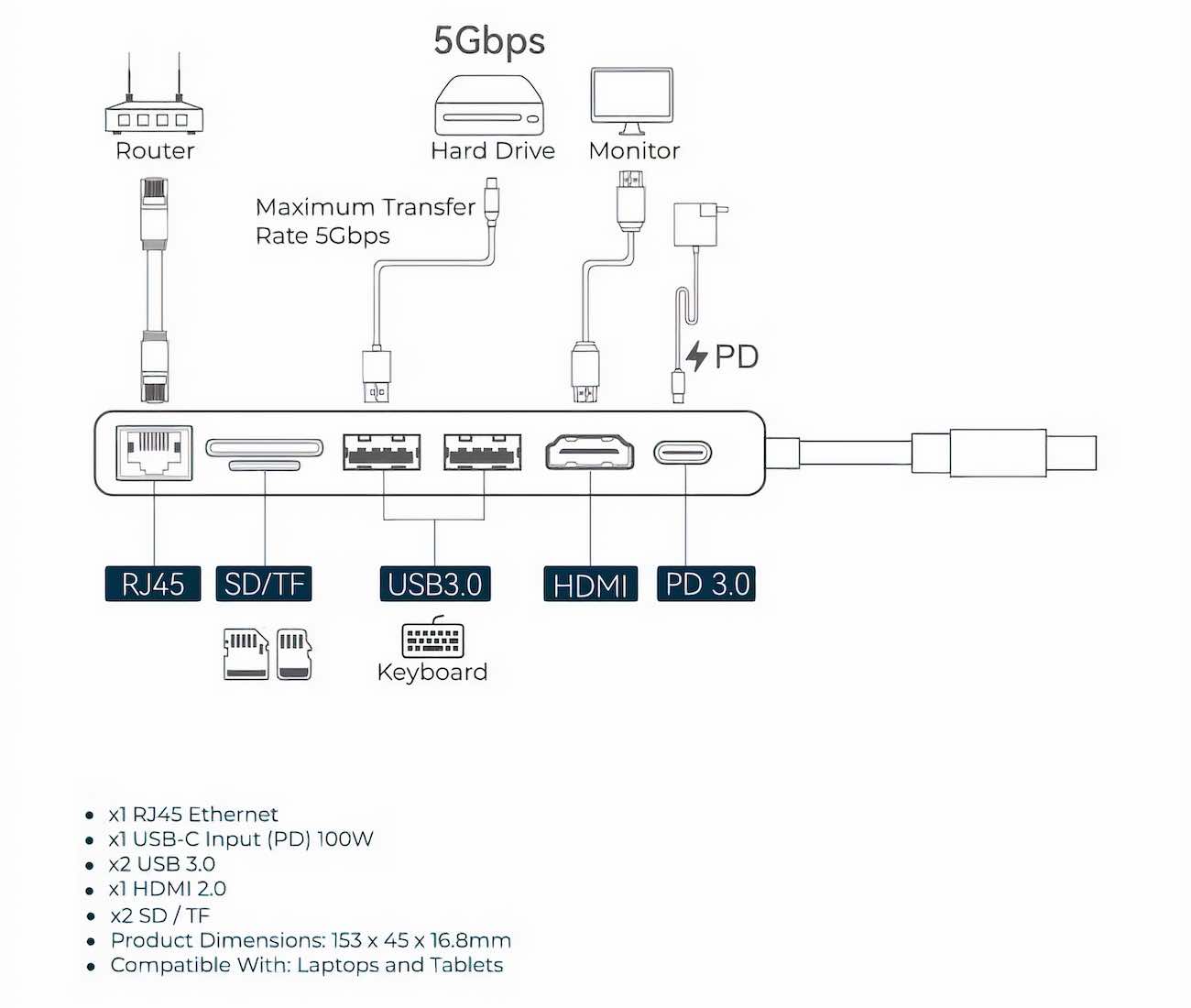 مدخلين USB-A مع سرعة نقل 5GBPS.
