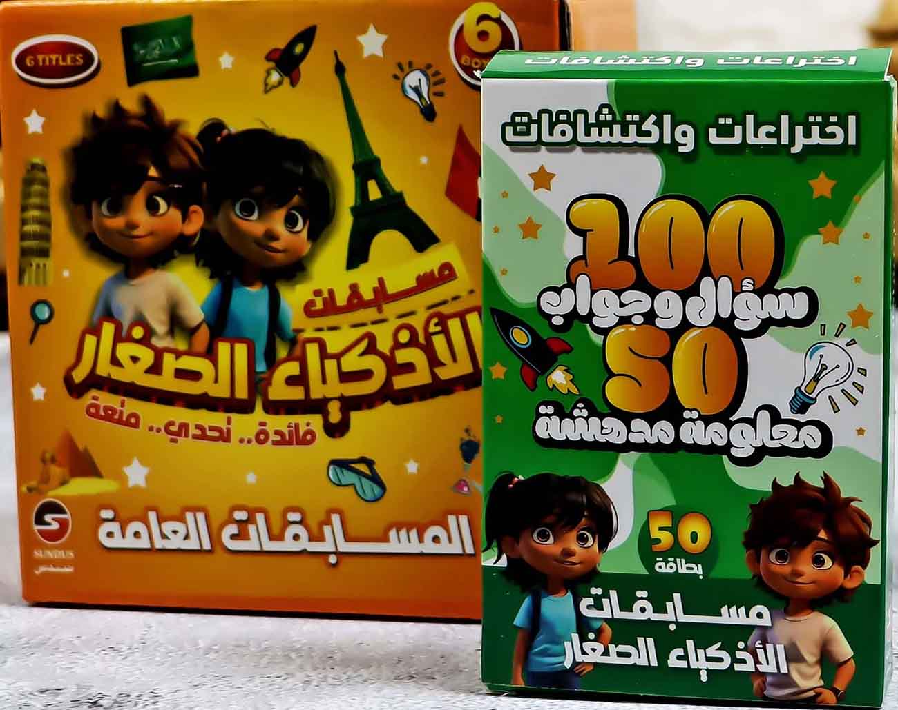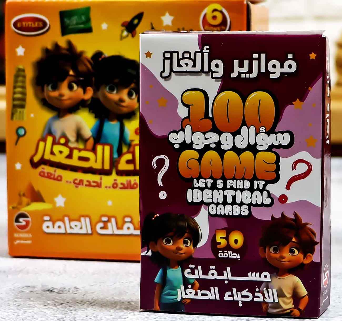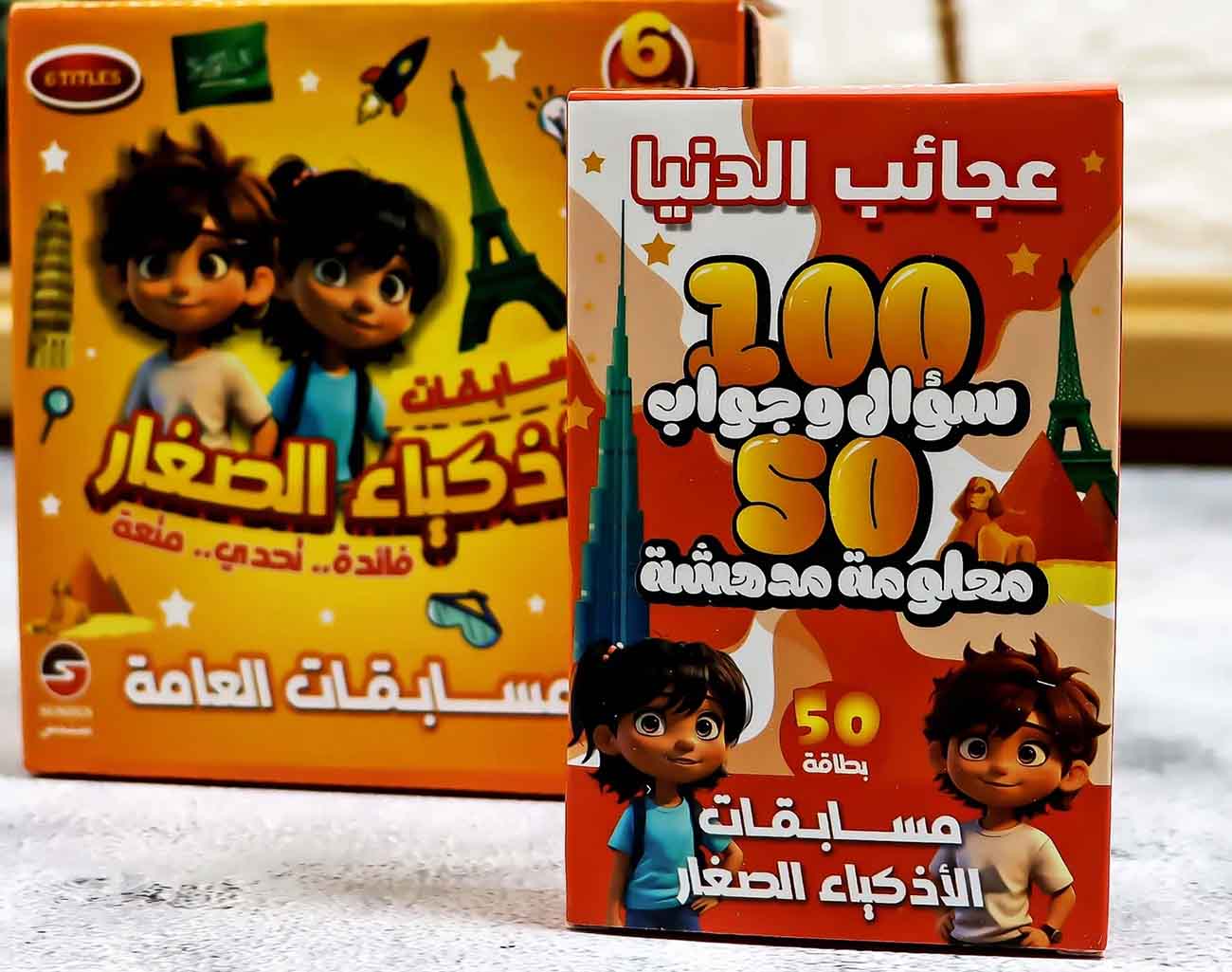 كل علبة فيها 50 بطاقة .. وكل بطاقة فيها سؤال وجواب من جهة وصورة ومعلومة مبسطة من الجهة الأخرى.