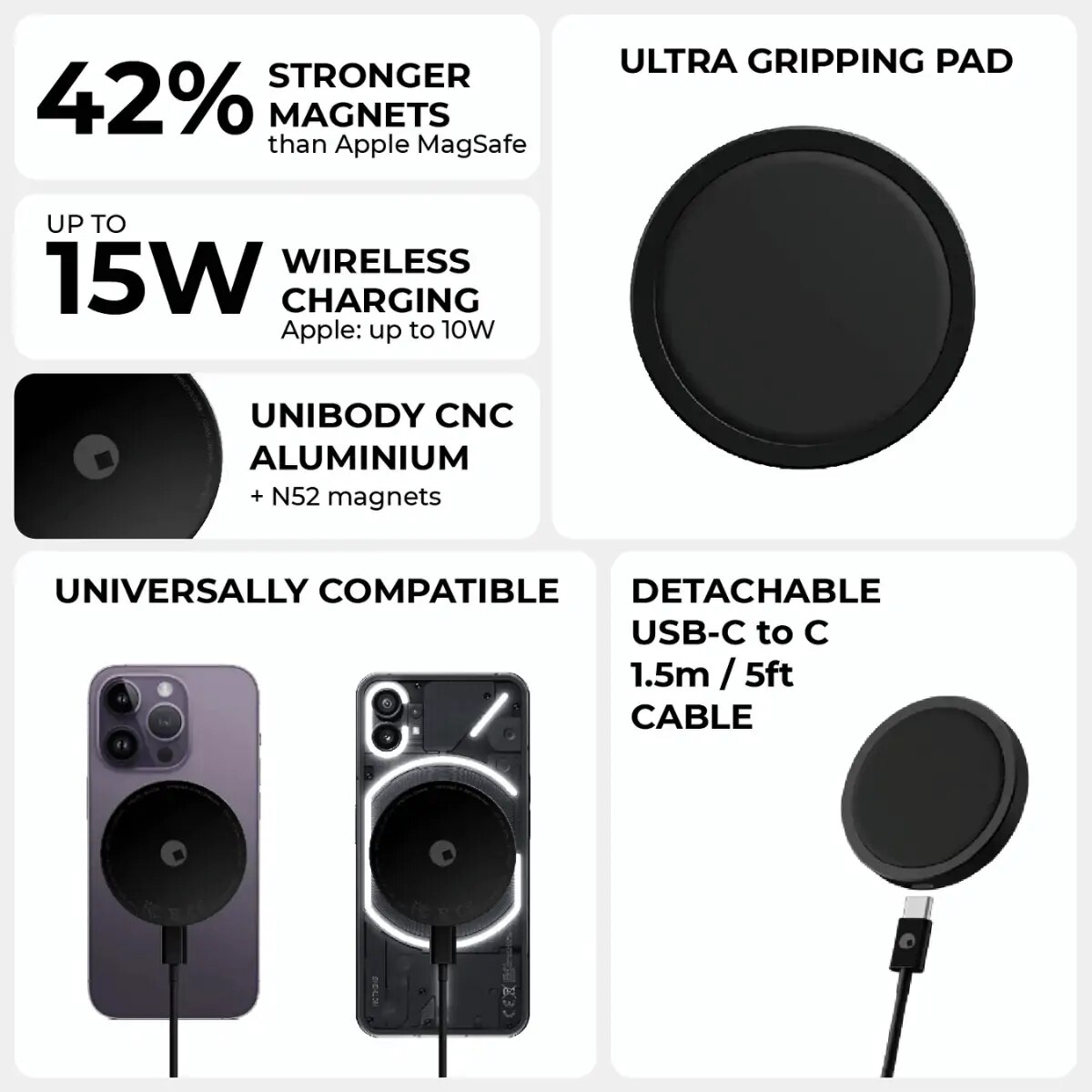 يحتوي على شاحن لاسلكي بقوة 15 واط.