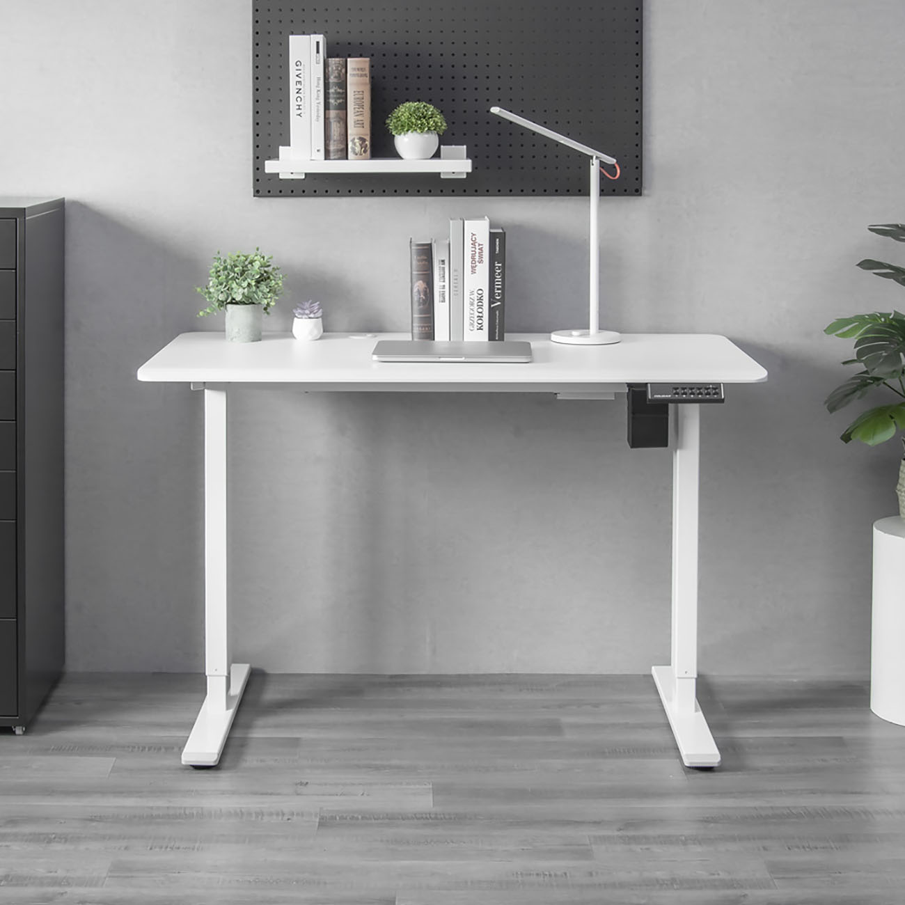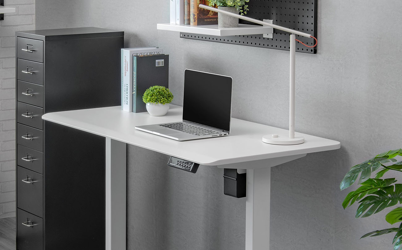 فيها ميزة ضبط الارتفاع الكهربائي .. بحيث تقدر تضبط ارتفاع الطاولة عن طريق ازرار ولوحة تحكم رقمية موجودة على يمين الطاولة.