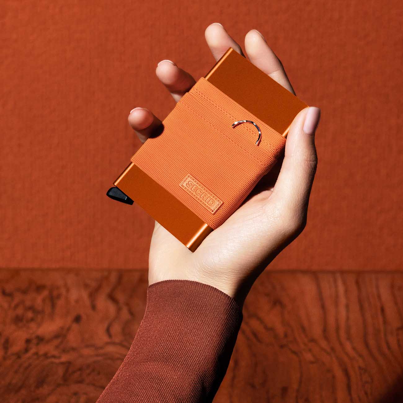 بووك Miniwallet للبطاقات من Secrid / ميزة الحماية من RFID / جلد مطفي / تصميم انيق / Truffle & Orange