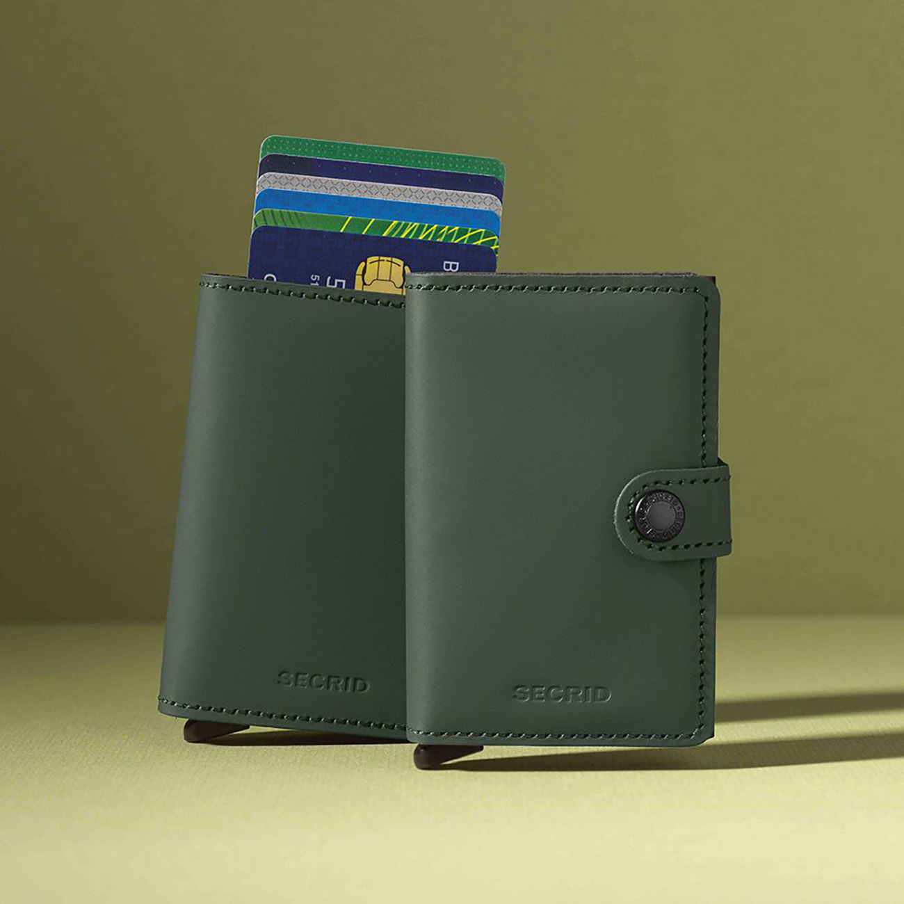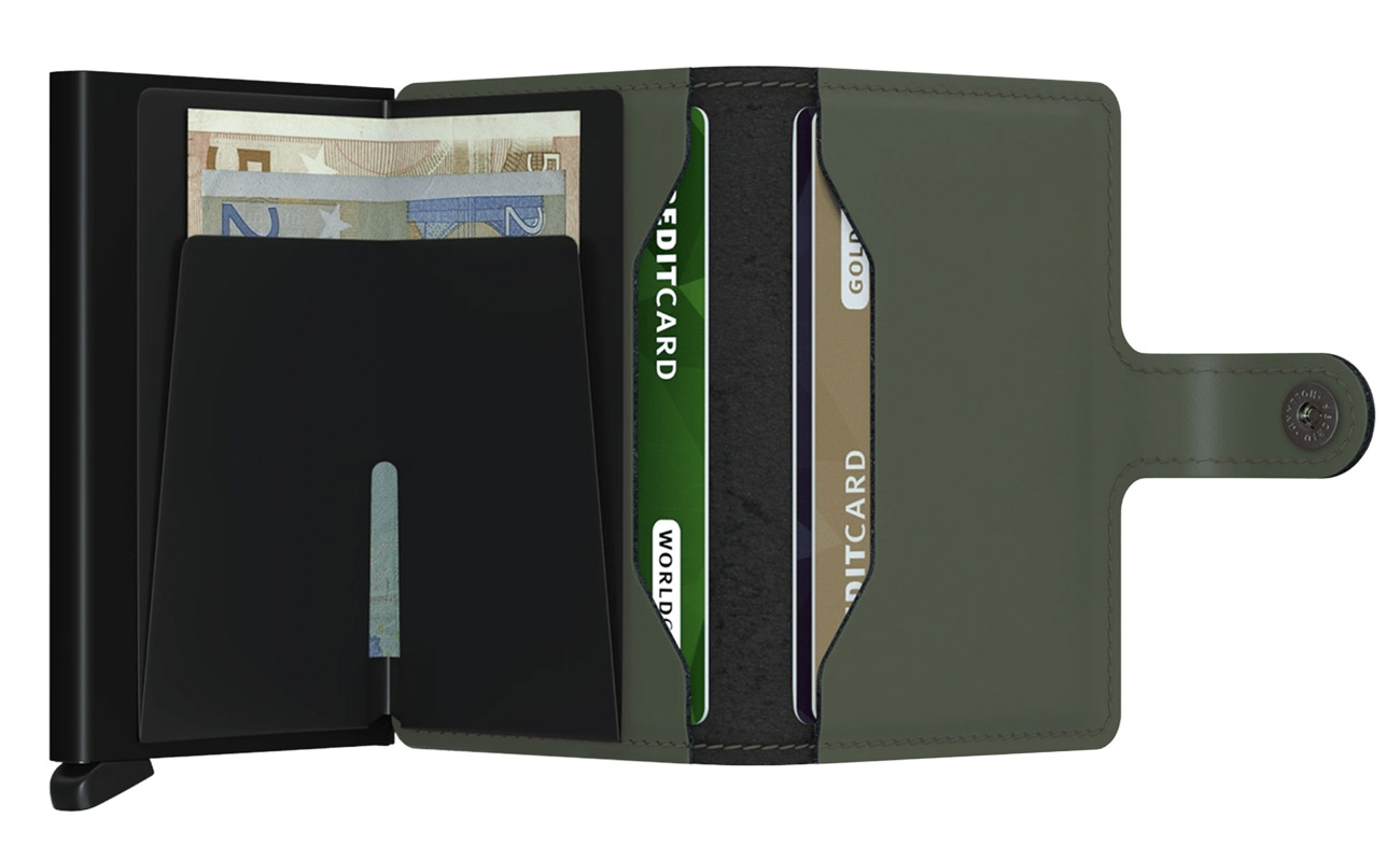 بووك Miniwallet للبطاقات من Secrid / ميزة الحماية من RFID / جلد مطفي / تصميم انيق / اخضر و اسود