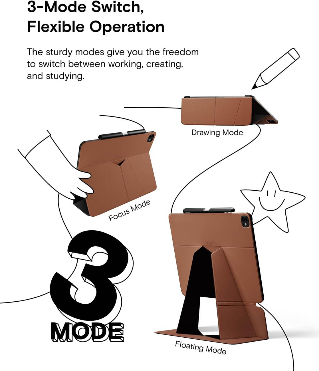 كفر و ستاند موفت Float Folio 2nd Gen لايباد برو 13 انش M4 / مرن يتغير لعدة اشكال / Sienna Brown