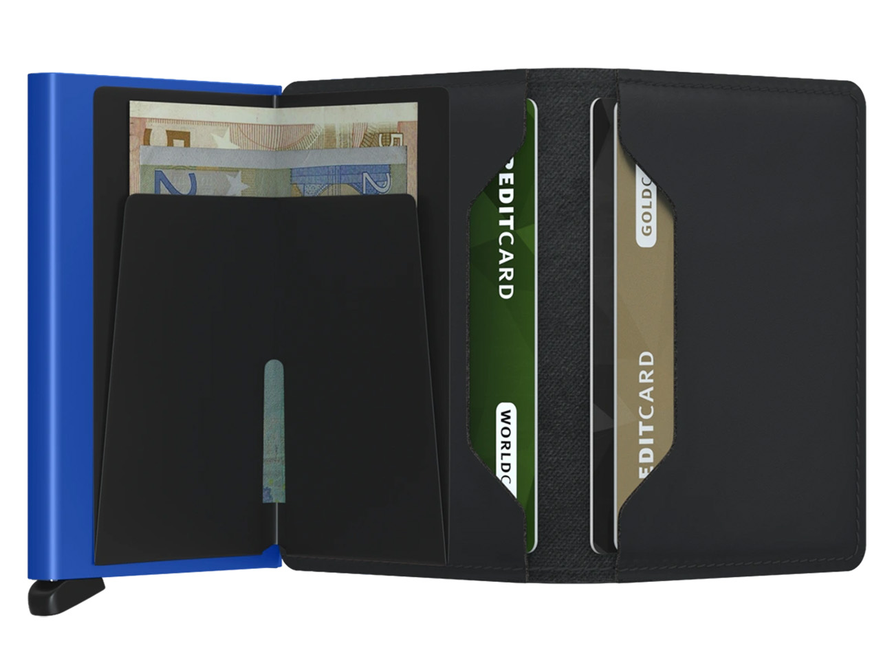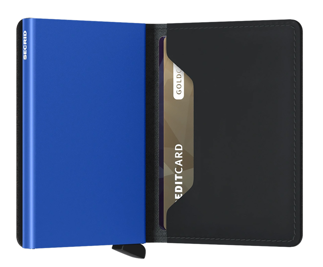 بووك Slimwallet للبطاقات من Secrid / ميزة الحماية من RFID / جلد مطفي / تصميم انيق / اسود و ازرق