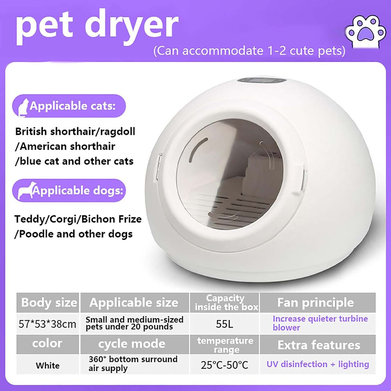 جهاز مميز لتجفيف فرو الحيوانات الاليفة.