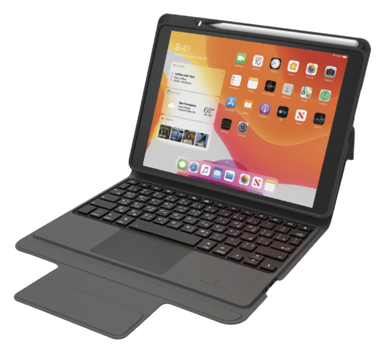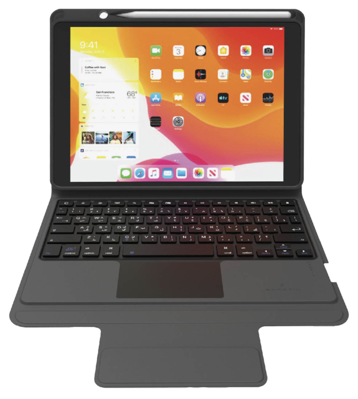 الكفر نفسه فيه ستاند يسهل عليك تثبيت الايباد واستخدام الكيبورد والتراك باد.