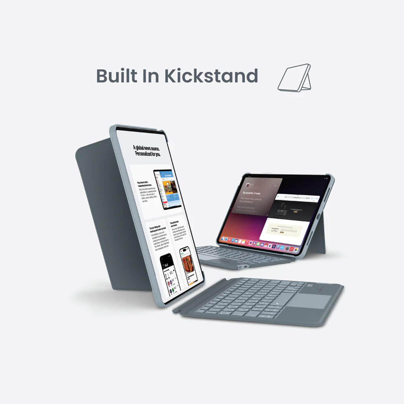 الكفر نفسه فيه ستاند يسهل عليك تثبيت الايباد واستخدام الكيبورد والتراك باد.