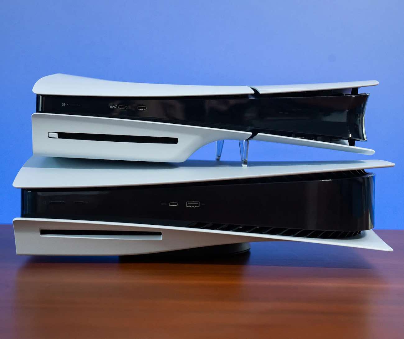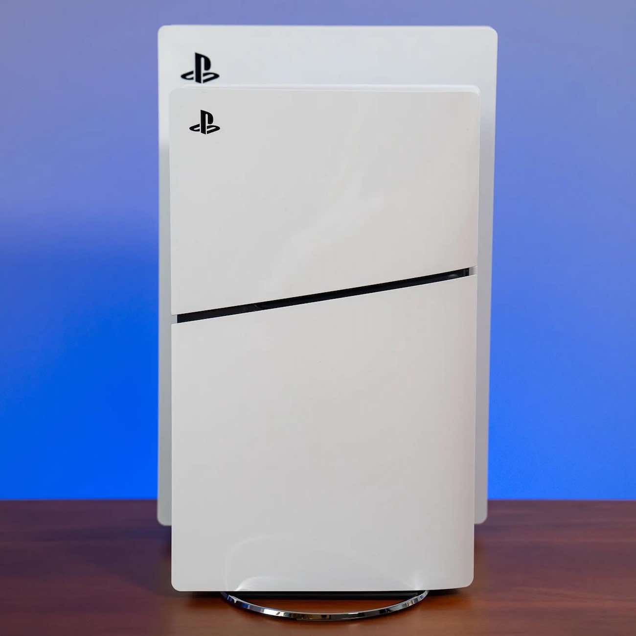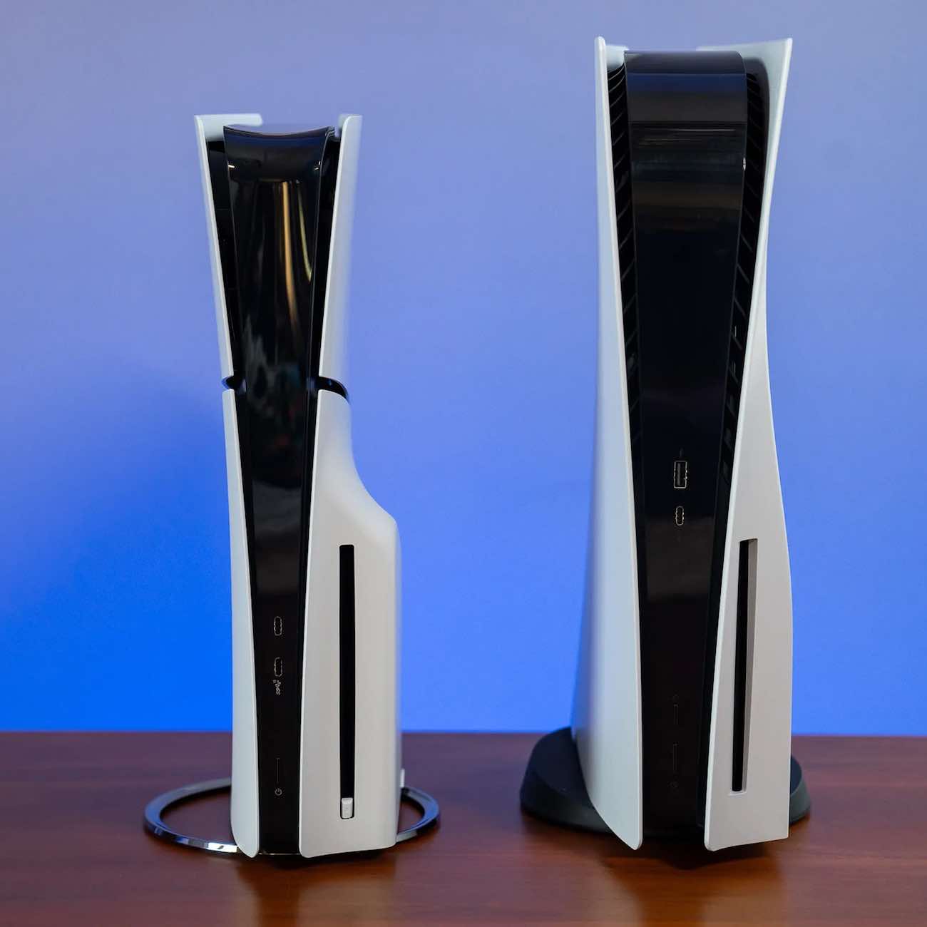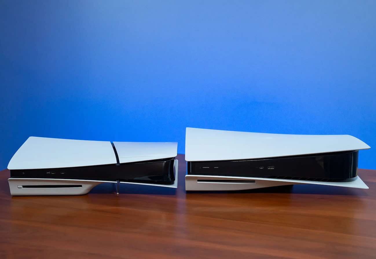 في الصور مقارنة بالحجم بين ال PS5 العادي وال PS5 Slim الجديد.