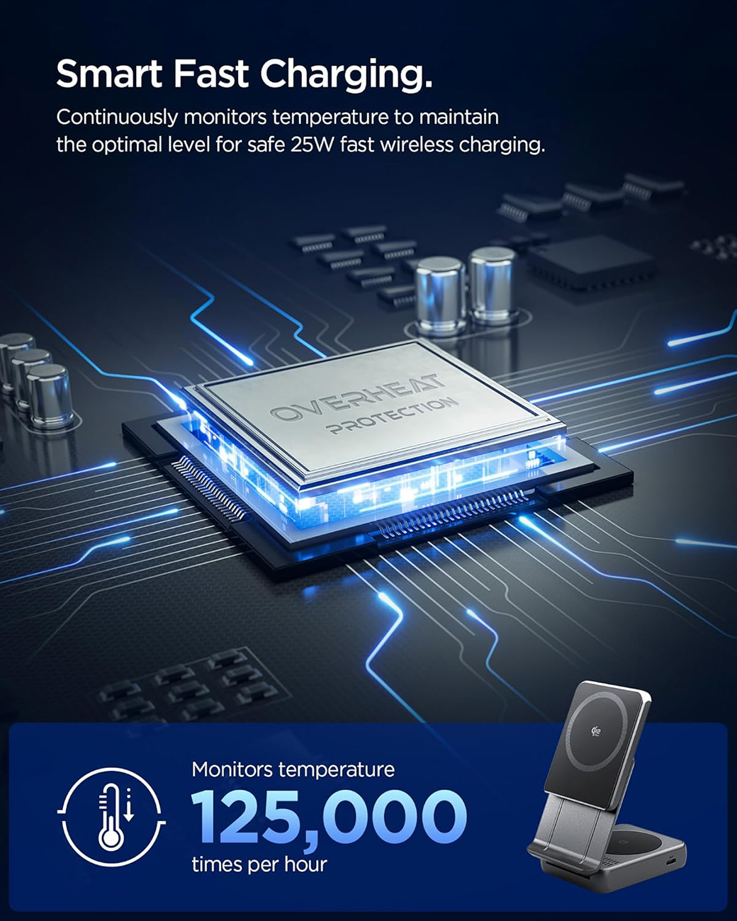 شاحن لاسلكي من Energea / يشحن الجوال + الساعة / مع ستاند + واير تايب سي مدمج / يدعم MagSafe / ازرق