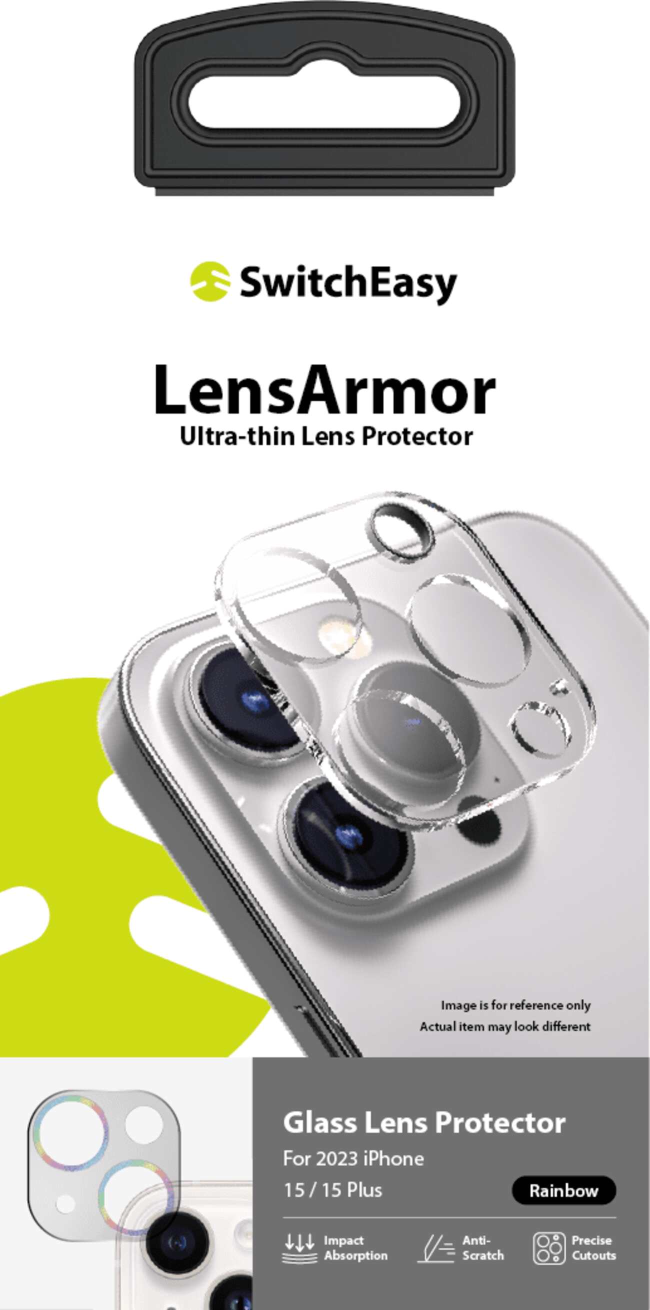 عدسات SwitchEasy LenzGuard لحماية الكاميرا / ايفون 15 برو + ماكس / زجاج الياقوت / قوس قزح