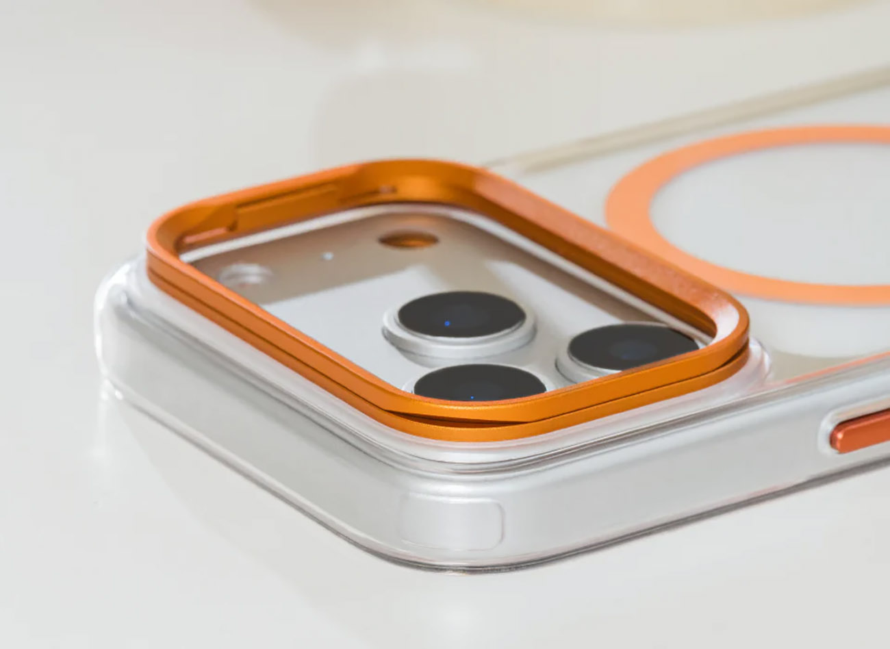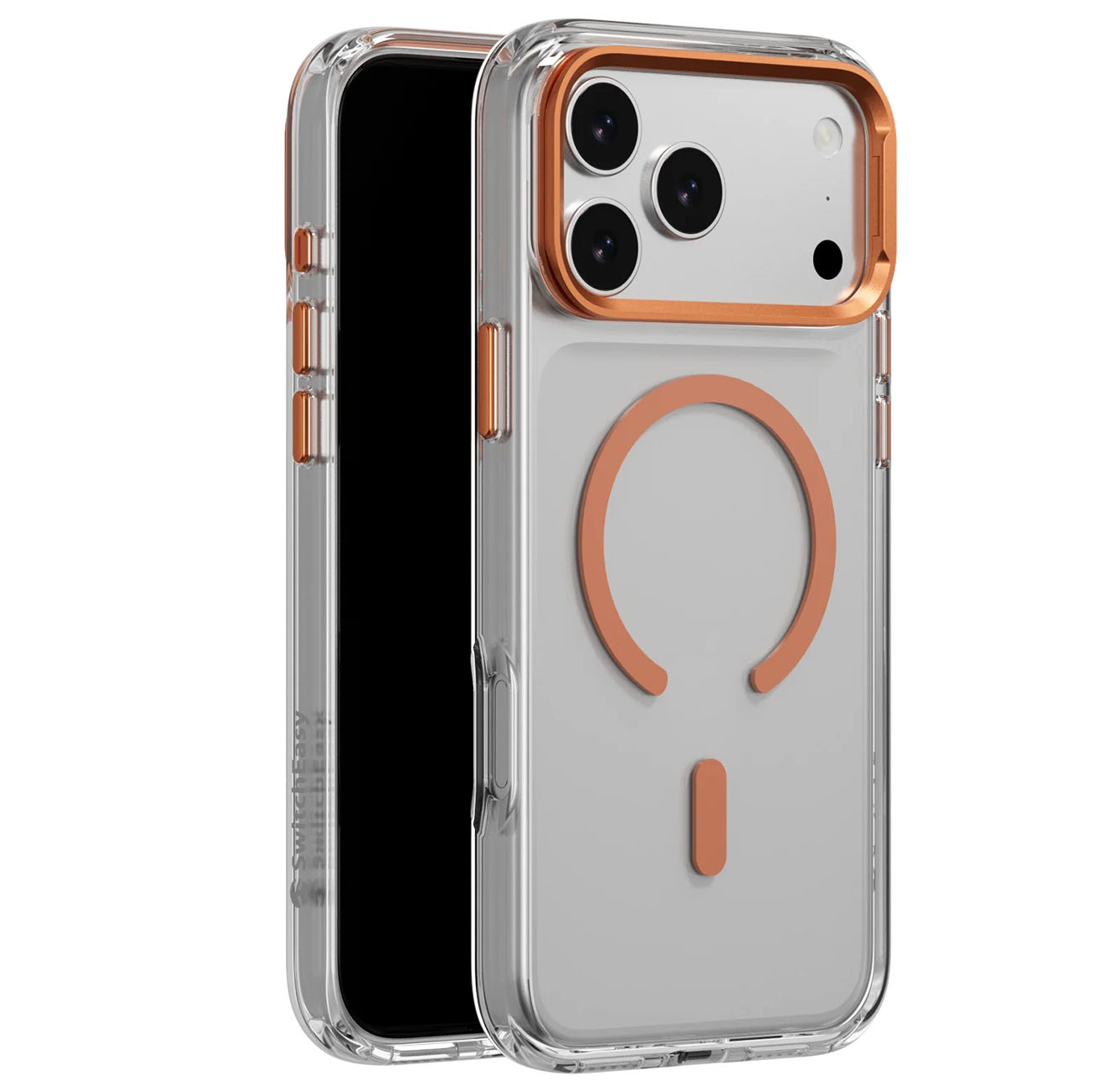 كفر SwitchEasy لايفون 17 برو / مع ستاند مدمج / يدعم MagSafe / ضد الطيحات / شفاف و برتقالي