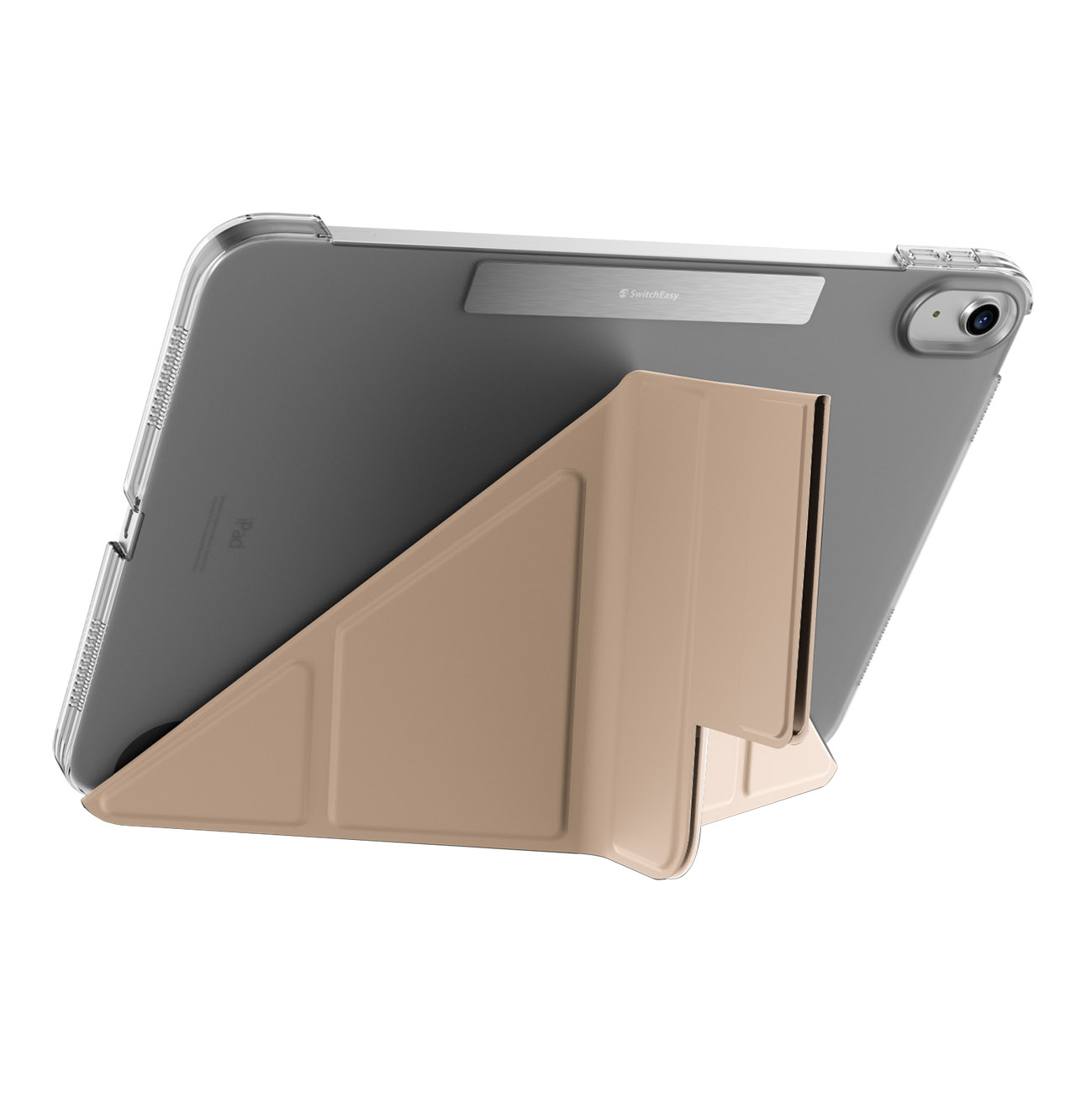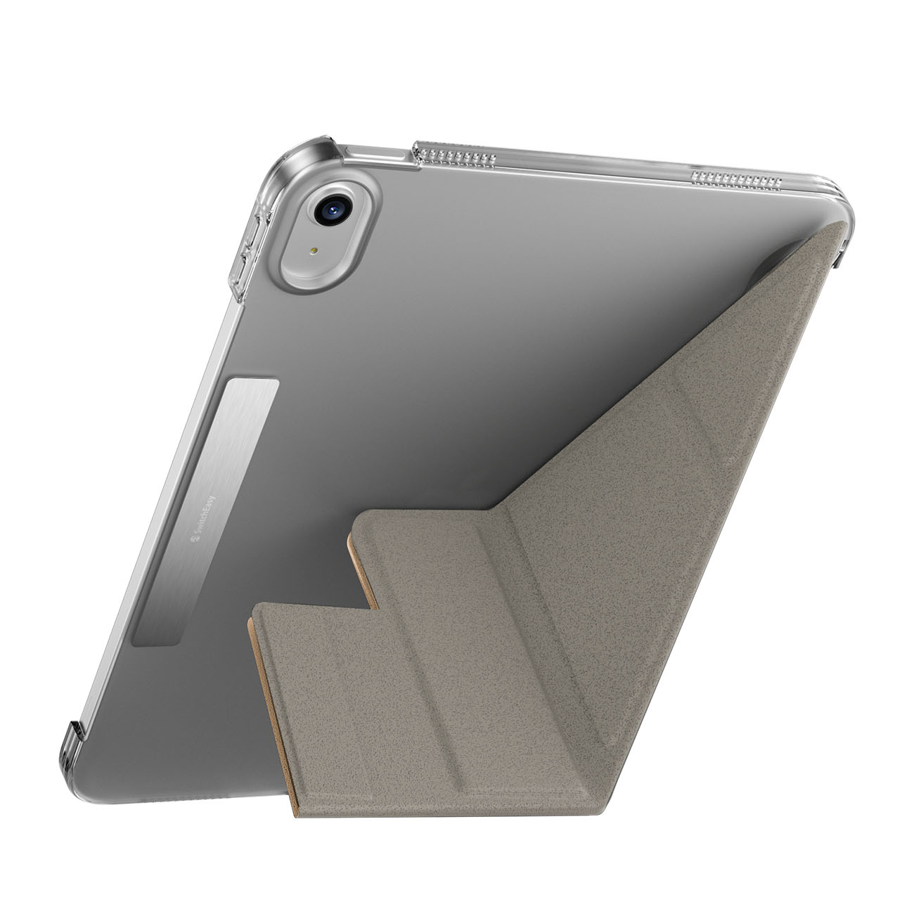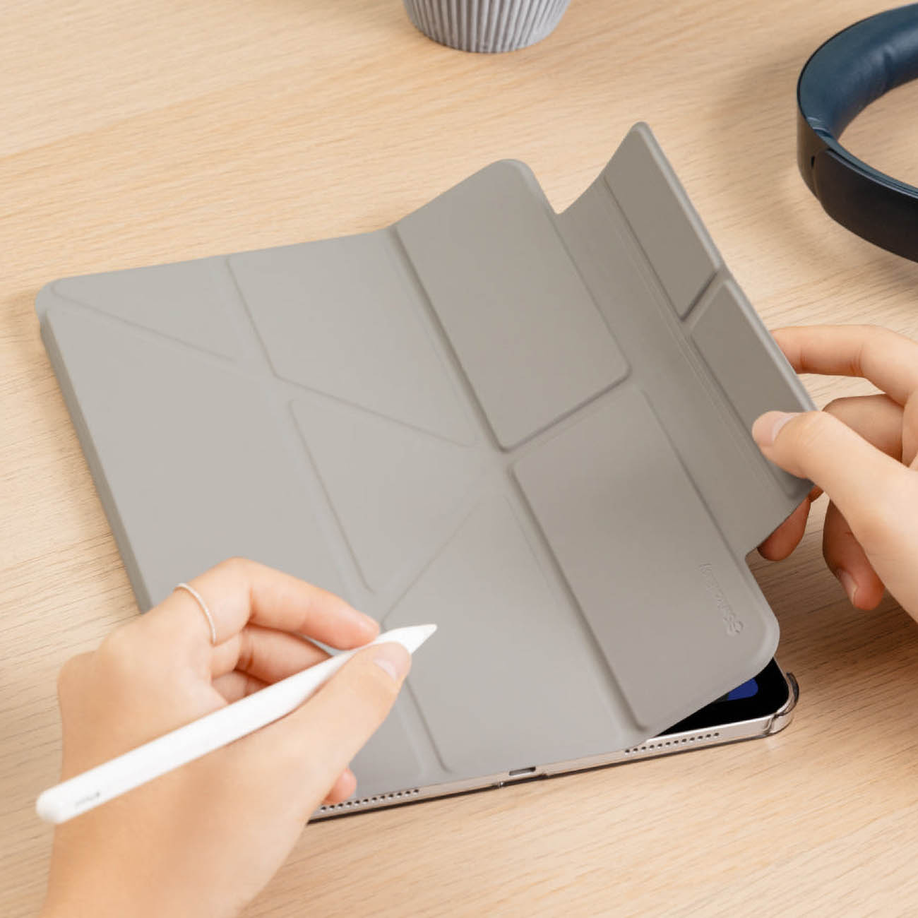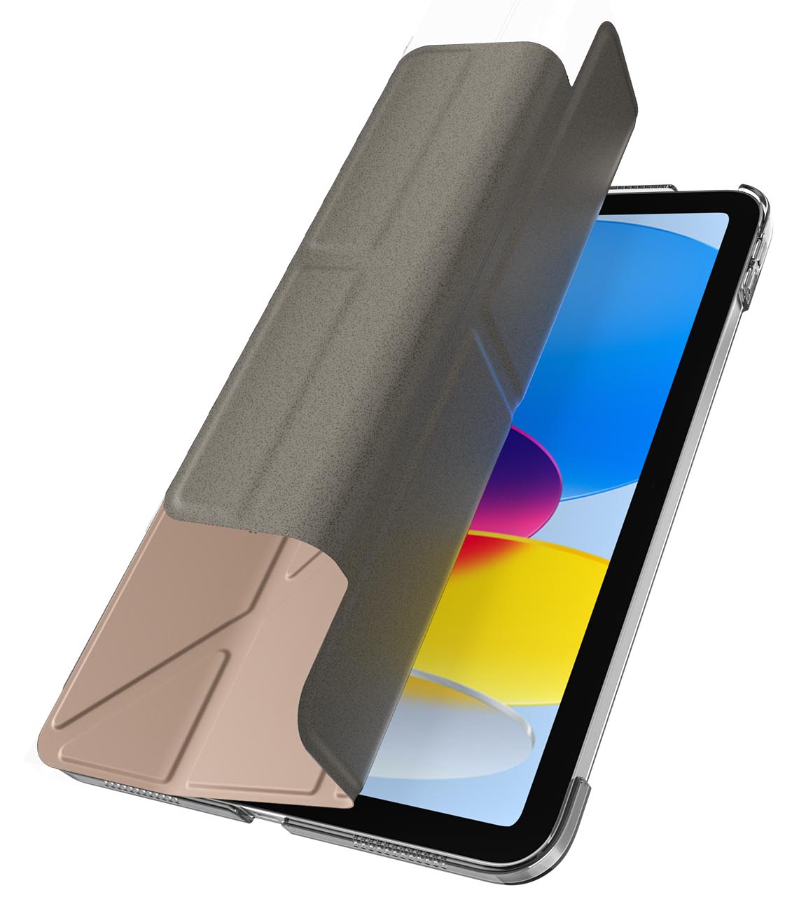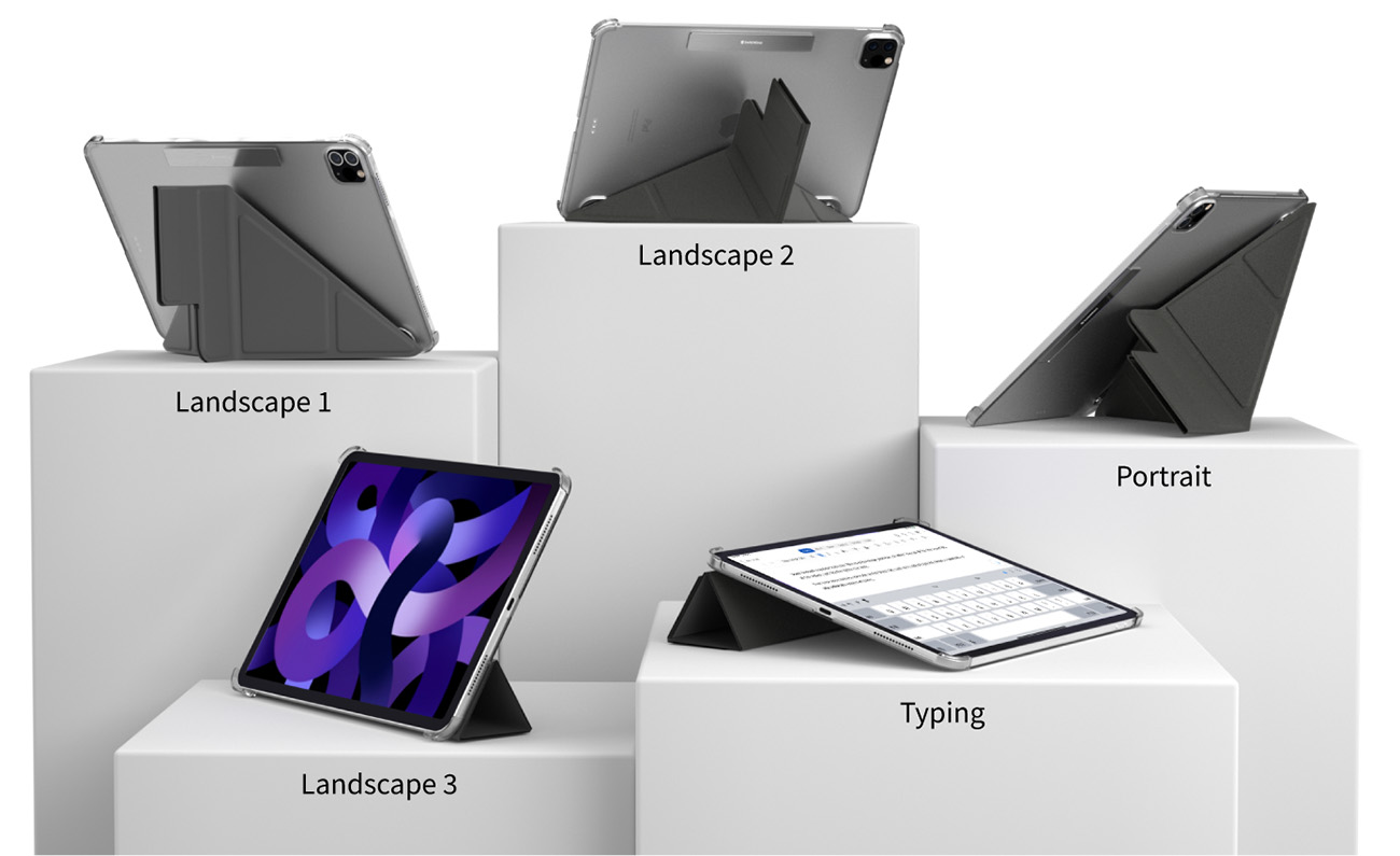 من خلال تشكيل الغطاء الامامي .. يمكن تثبيت الايباد بالطول او بالعرض وبعدة زوايا تناسب استخدامكم.