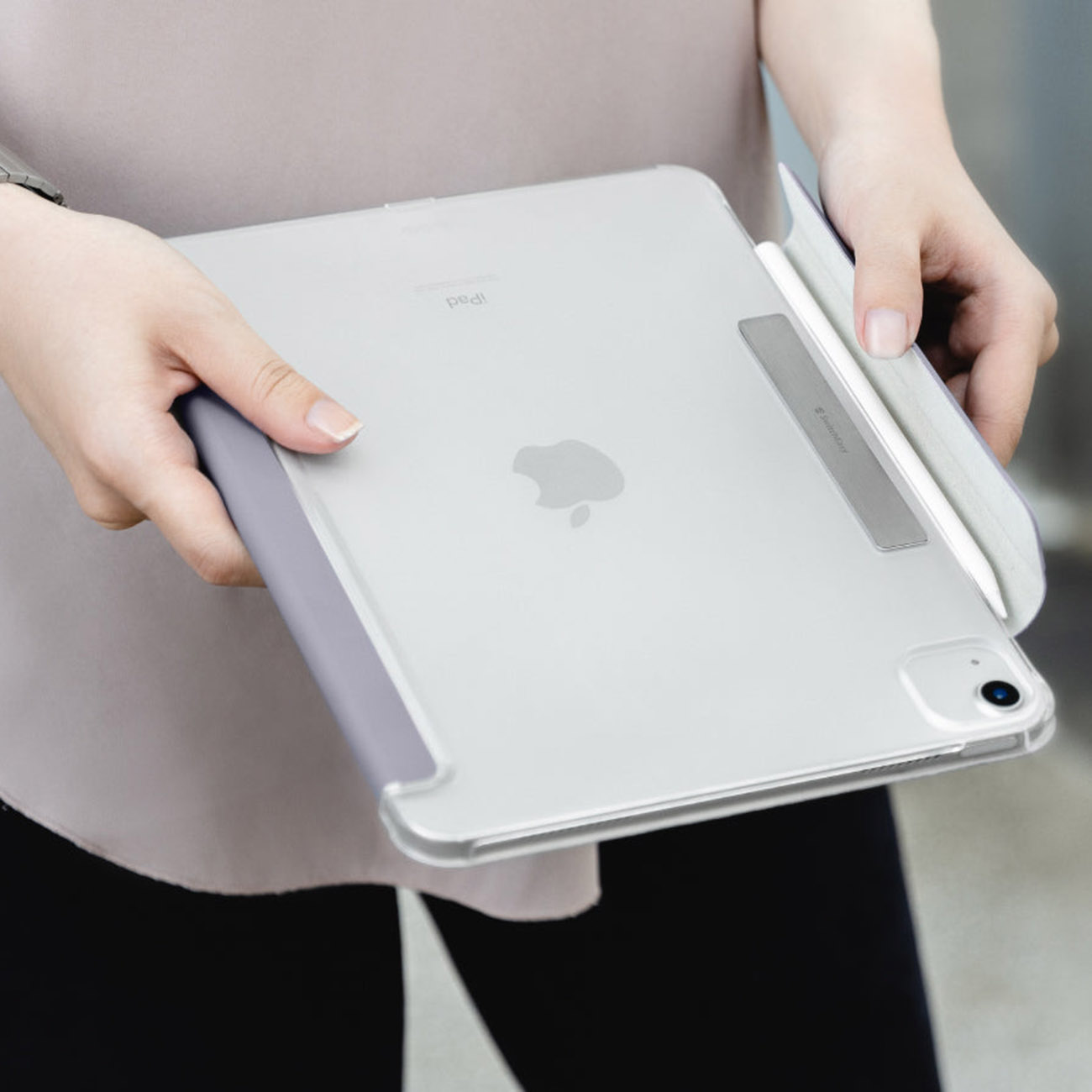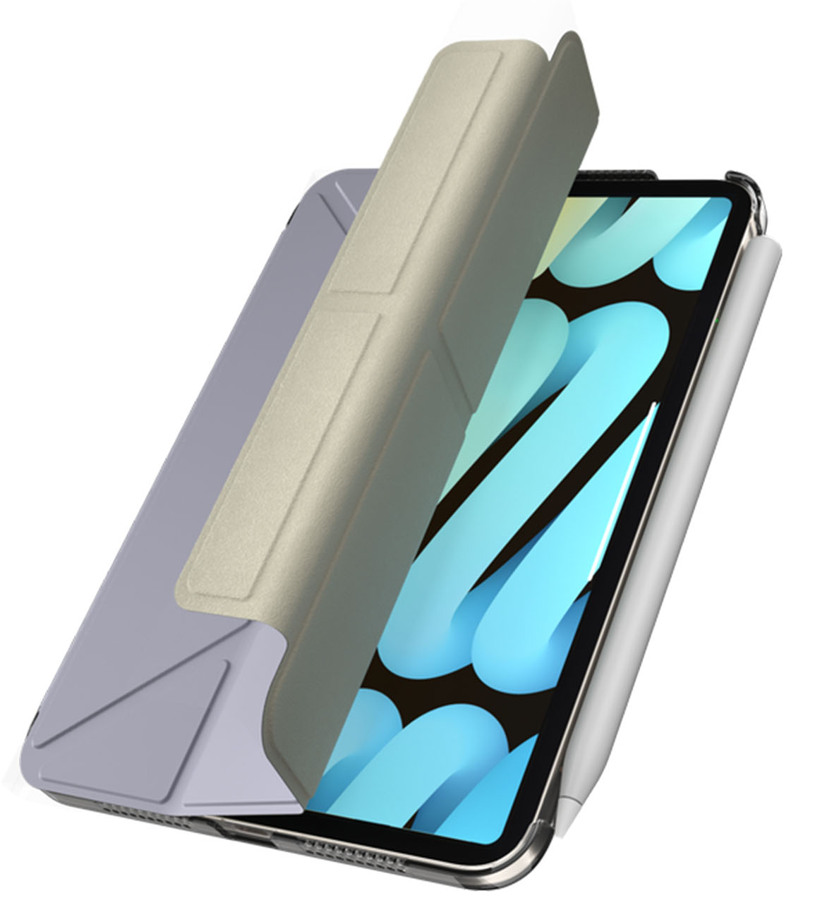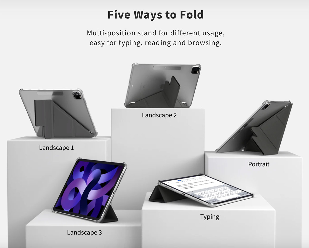 من خلال تشكيل الغطاء الامامي .. يمكن تثبيت الايباد بالطول او بالعرض وبعدة زوايا تناسب استخدامكم.