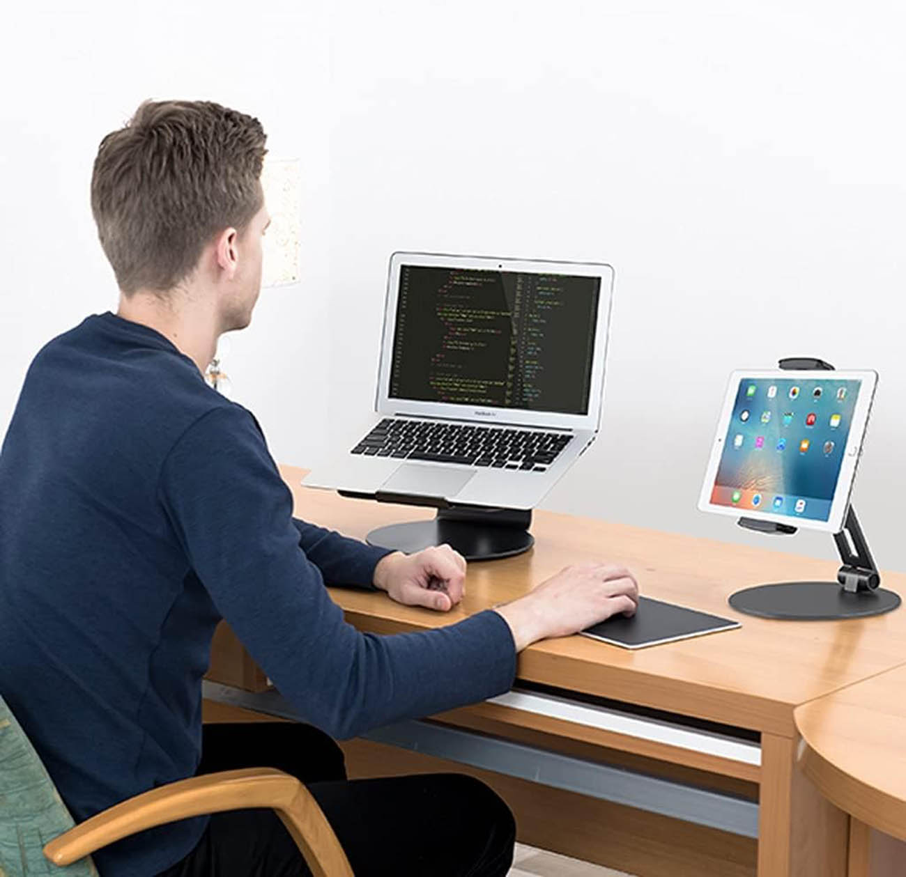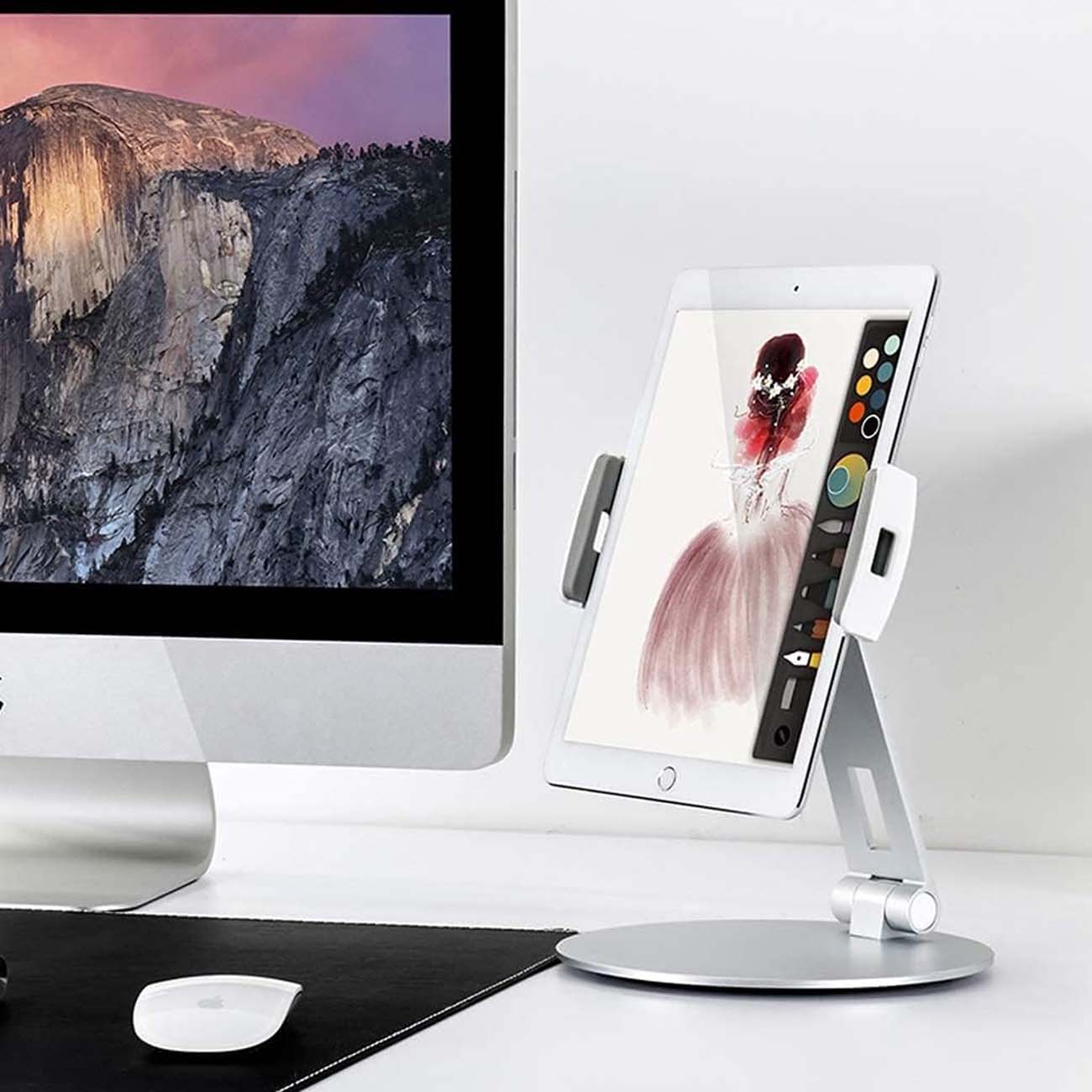 ستاند مكتبي لتثبيت الجوال و التابلت / يدعم اجهزة حتى 14 انش / فضي