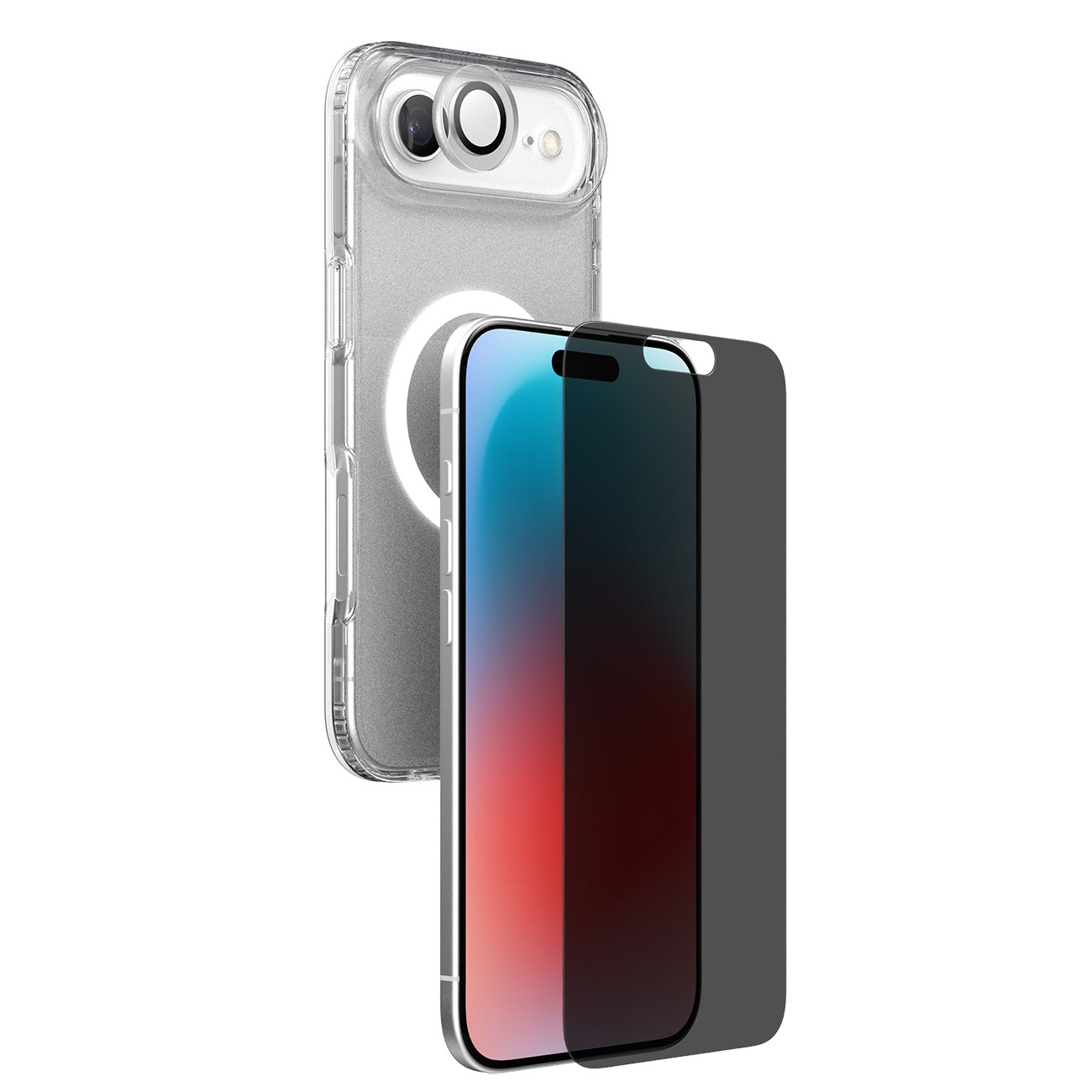 حزمة حماية لايفون 17 برو ماكس من Tech21 / كفر شفاف + حماية شاشة زجاج مخفي + عدسة كاميرا