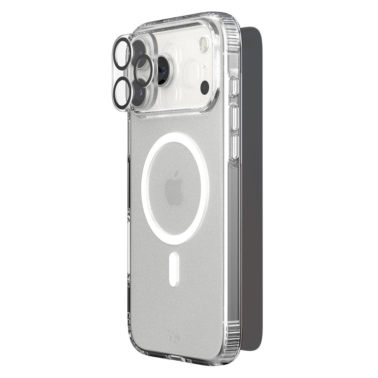 حزمة حماية لايفون 17 برو ماكس من Tech21 / كفر شفاف + حماية شاشة زجاج شفاف + عدسة كاميرا