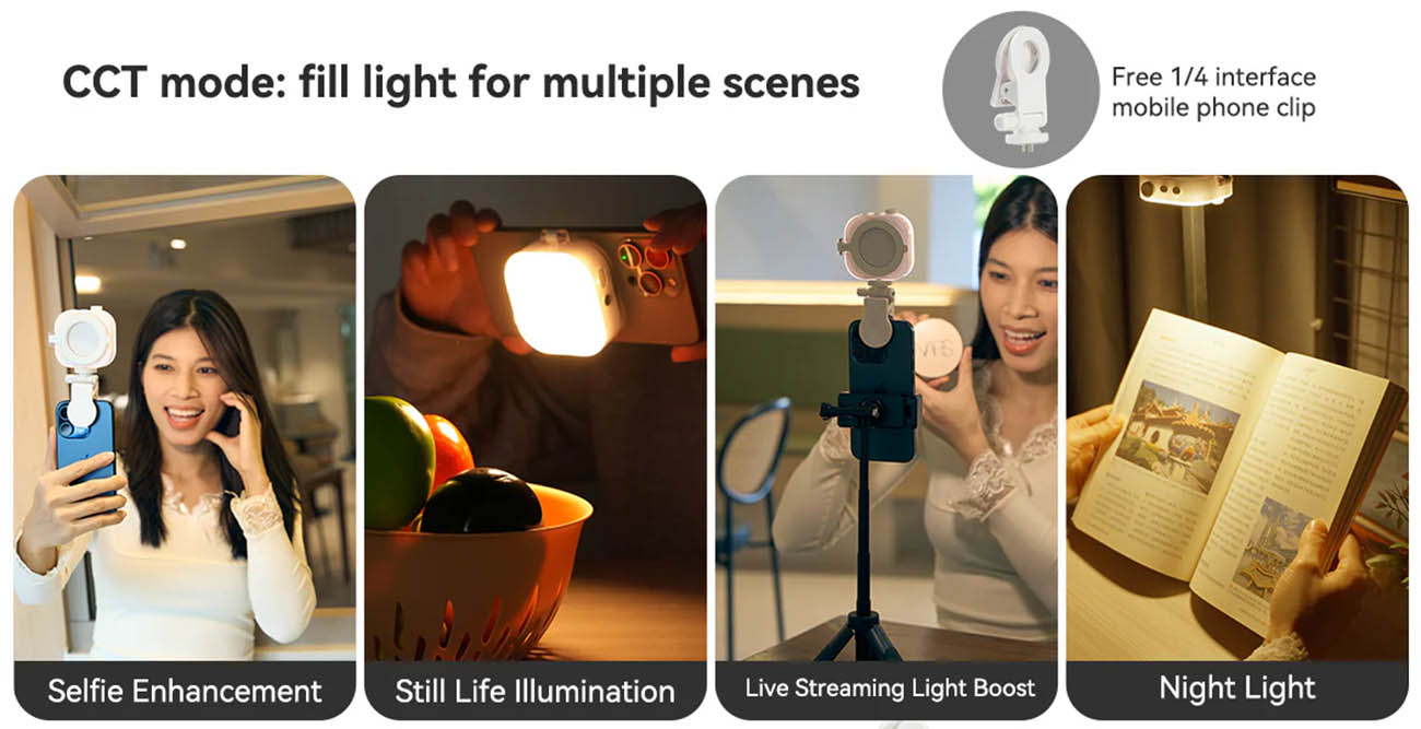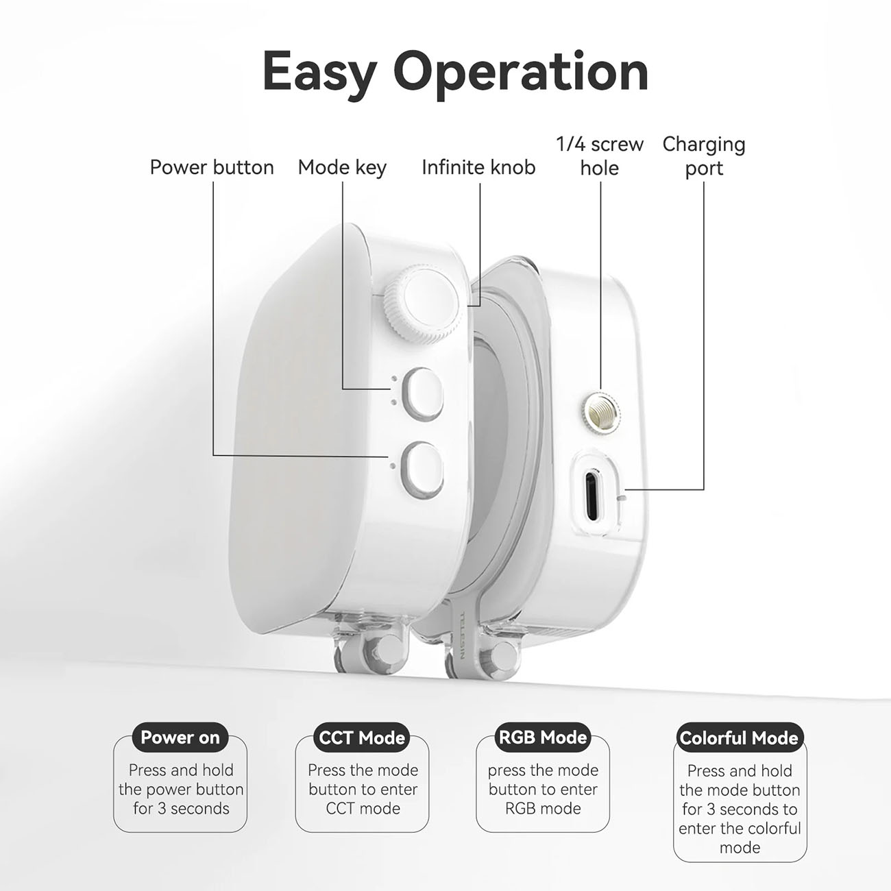 فيه وضعين للاضاءة قابلة للتعديل .. وضع CCT لضبط الاضاءة البيضاء .. ووضع RGB للاضاءة الملونة.